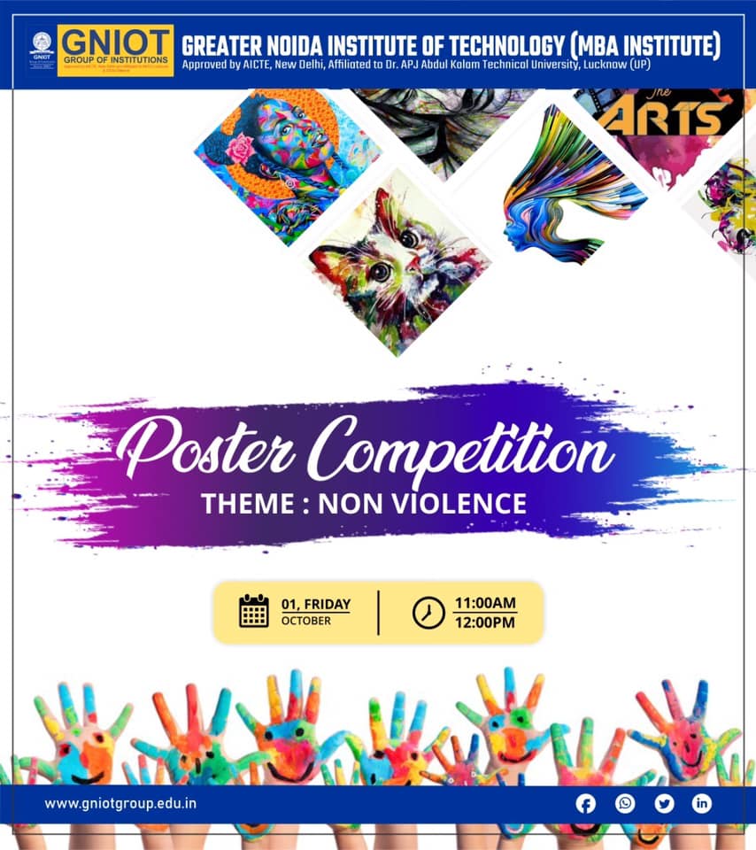 Azadi Ka Amrit Mahotsav' is an initiative of the central government to celebrate and commemorate 75 years of India's independence. To celebrate the glories of freedom struggle in the past and to make new and Iconic India, we the citizens of India at GNIOT MBA Institute, are taking this initiative forward by organizing a Poster Making Competition on “Non-Violence”. The objective is to develop the creativity of students and to incline students towards making India a “Peaceful Nation”