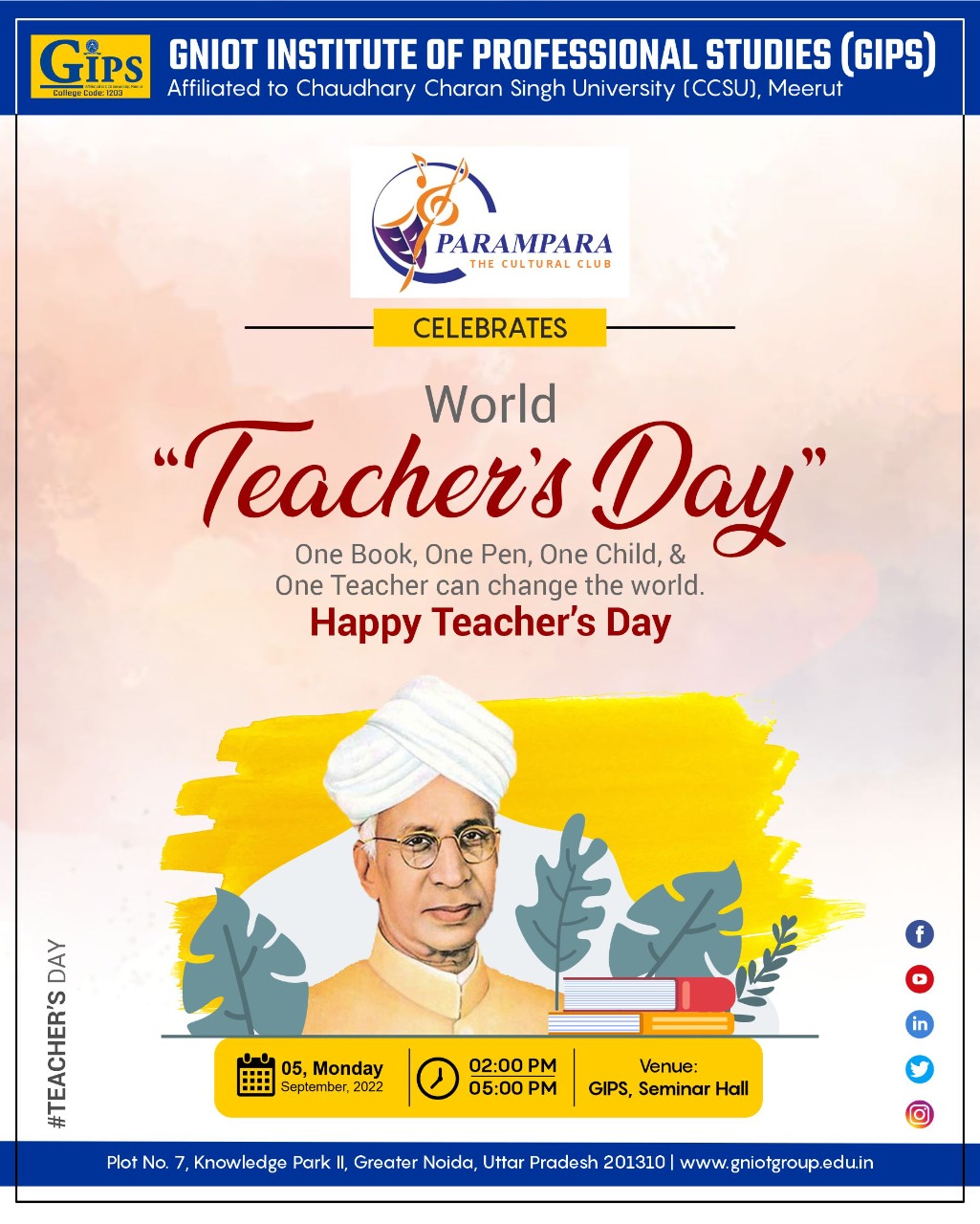 Greater Noida Institute of Professional Studies is going to organize Teacher’s Day.