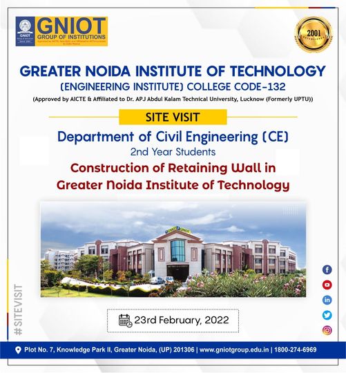 Department of Civil Engineering is organizing a Site Visit at 2.00 PM for 2nd & 3rd Year Students to explore the knowledge of construction work, presently going on in our institute.