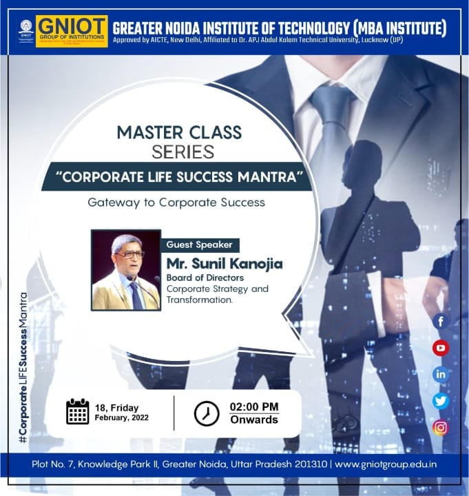 International Master Class series on "CORPORATE LIFE SUCCESS MANTRA", 18th February 2022(Friday), 2:00pm onwards.
