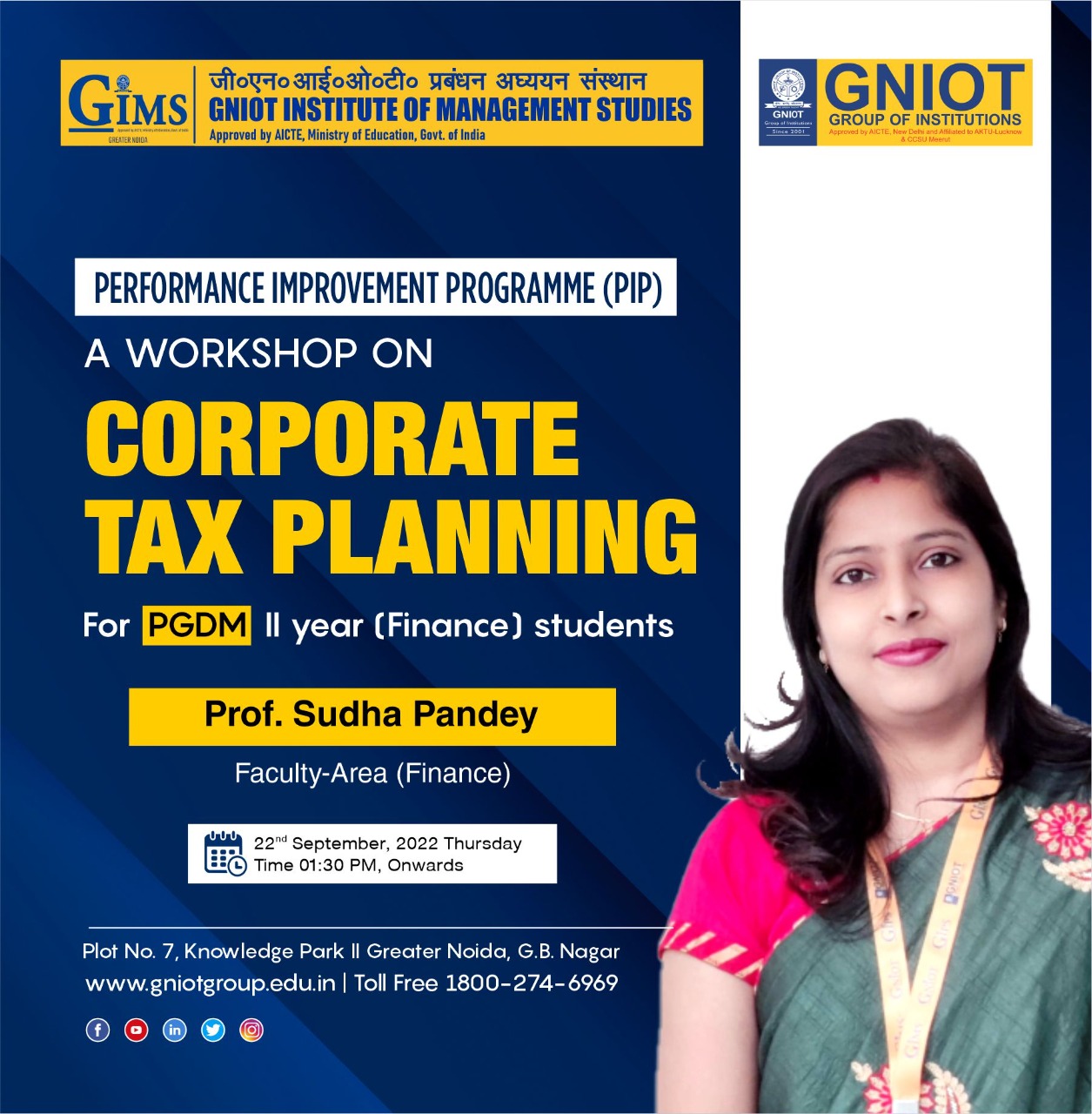 a workshop on 'Corporate Tax Planning' is organized for PGDM II Year students on 22nd September 2022, 1:30 p.m. onwards.