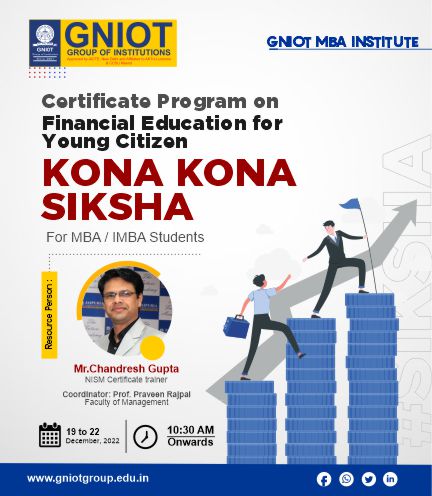 MBA Institute is organizing Certificate course for MBA 1st and 2nd year and IMBA 2nd, 3rd, 4th and 5th year students by NISM in collaboration with Kotak Securities "Financial Education For Young Citizens"