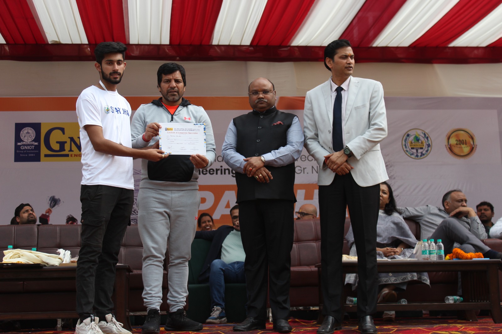 Under the visionary leadership of Chairman Dr. Rajesh Gupta, Vice Chairman Shri. Gaurav Gupta, Director Dr. Dhiraj Gupta, Dean Academics Dr. Sanjay Kumar, and Dean Student Welfare, Dr. Iqbal Ahmed, Greater Noida Institute of Technology (Engineering Institute) successfully conducted its much-awaited annual sports fest, SPARDHA 2024, from February 26th to March 2nd, 2024. The 6-day event showcased participants perseverance, tenacity, and athletic abilities. The sports festival commenced with an opening ceremony, graced by the Chief Guest, former Indian Kabaddi Captain, Shri Dinesh Bhardwaj Ji (Arjuna Awardee and Gold Medallist), who emphasized the importance of sports, followed by the ceremonial lighting of the lamp.