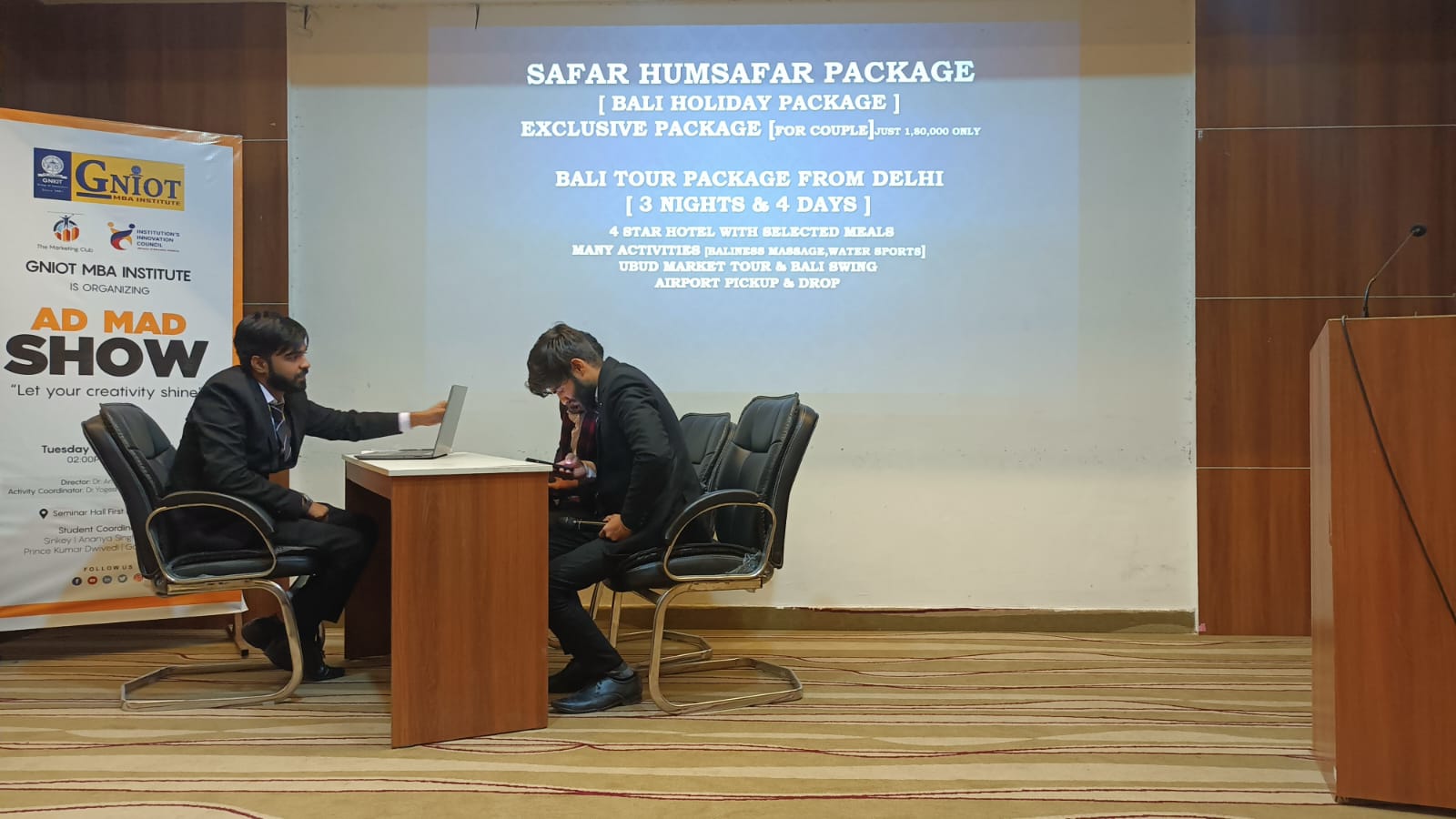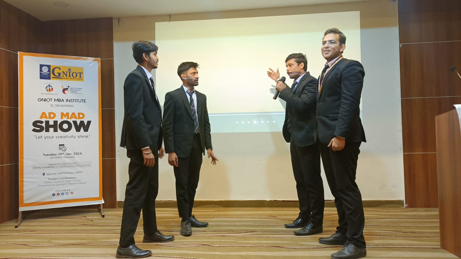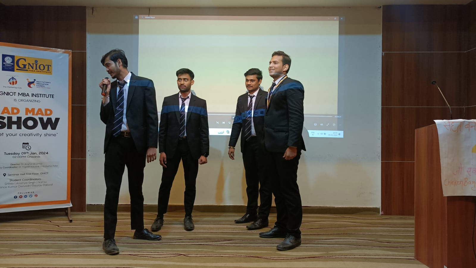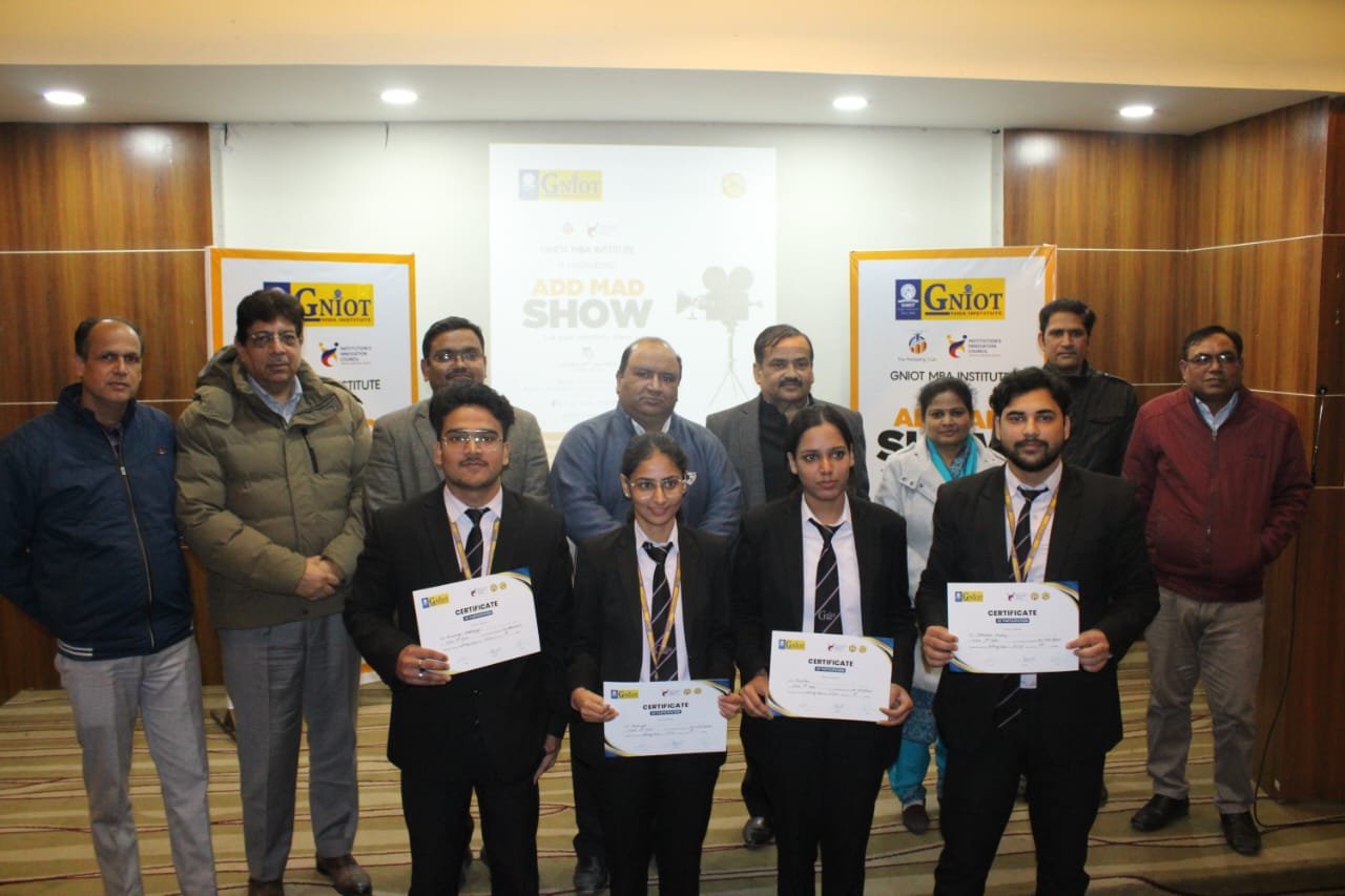 GNIOT MBA Institute recently hosted the ADD - MAD show focusing Creativity, Teamwork, Communication, Marketing Insights & Pressure Handling .  In this event Fifteen competitive teams participated in which Ananya Singh, Anshika, Anurag Updhyaya & Uthkarsh Dubey  top spot, showcasing exceptional talent and secured the 1st position. Satyam & Team demonstrated remarkable skills, secured the 2nd position. The winning teams were honored with certificates presented by Director Dr. Anshul Sharma, along with Dean Academic and HOD. The event not only celebrated creativity but also highlighted the institute's commitment to recognizing and encouraging excellence in its students.