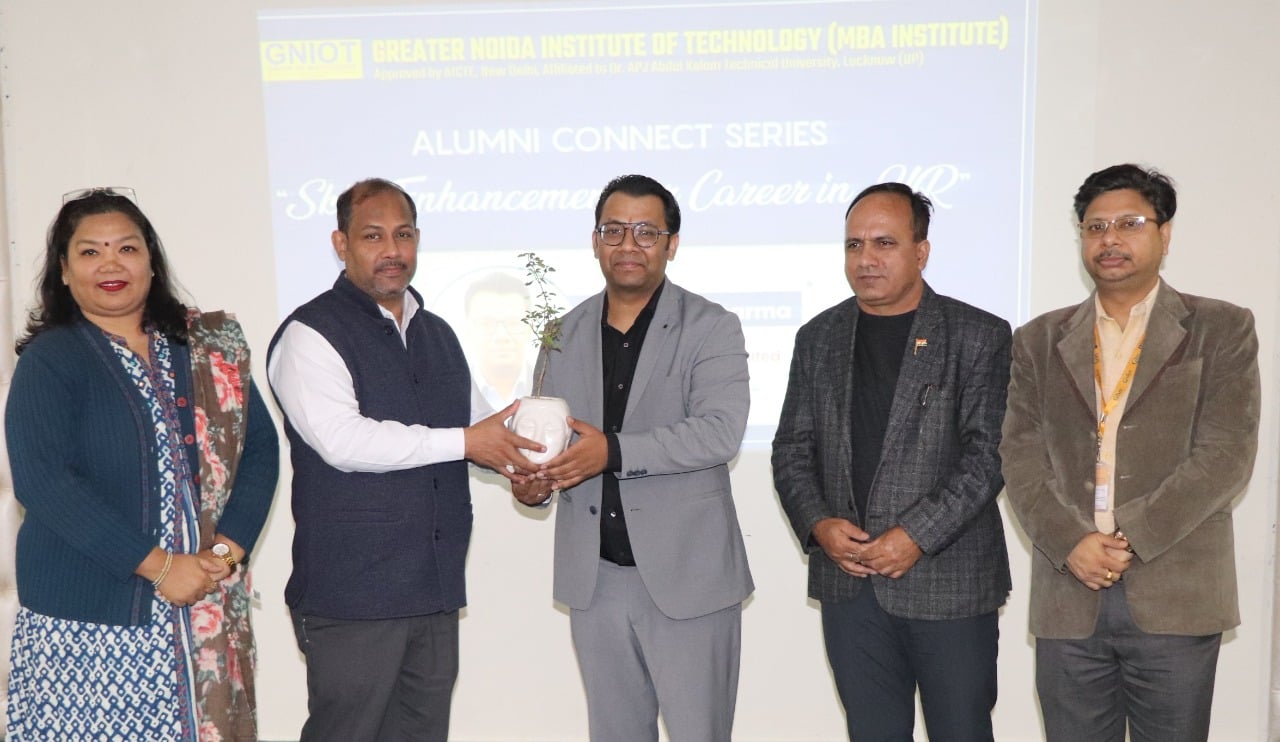 The success of any school can be measured by the contribution the alumni makes to our national life. John F. Kennedy. A session of Alumni Connect Series was conducted today on “Skill Enhancement for Career in HR”. It was organised by the Alumni Cell of Greater Noida Institute of Technology MBA INSTITUTE. The Alumni of college Mr Vikas Sharma (Alumnus 2010-12) Manager Corporate HR, Ashiana Housing Limited was the resource person. This day is very important as it provides an opportunity for junior students to meet their super seniors and seek their guidance. The alumni cell provided a platform to budding managers to interact and share the insight from this industry expert. He delivered his talk on Skill Development and Enhancement needed by the student’s to excel in the field of Human Resource. It was a very informative session where students learnt many practical things needed in this competitive corporate world. The programme was coordinated by Mr Ashutosh Kumar Convenor Alumni Cell along with the members of the cell Mr. Ashok Gupta and Ms. Deepika Varshney. Overall it was extremely interactive and resourceful session.