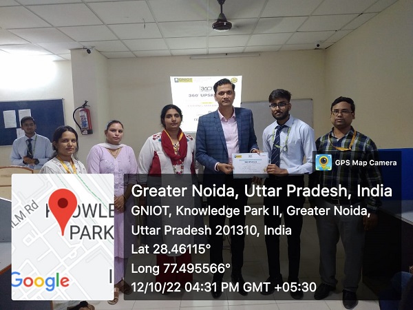 Event was successfully carried out under the profound guidance of Dr. Dhiraj Gupta, Director, GNIOT, Ms. Sarika Agarwal, HOD, 360⁰ UpSkillls and Mr. Vijay Kumar, Event coordinator.