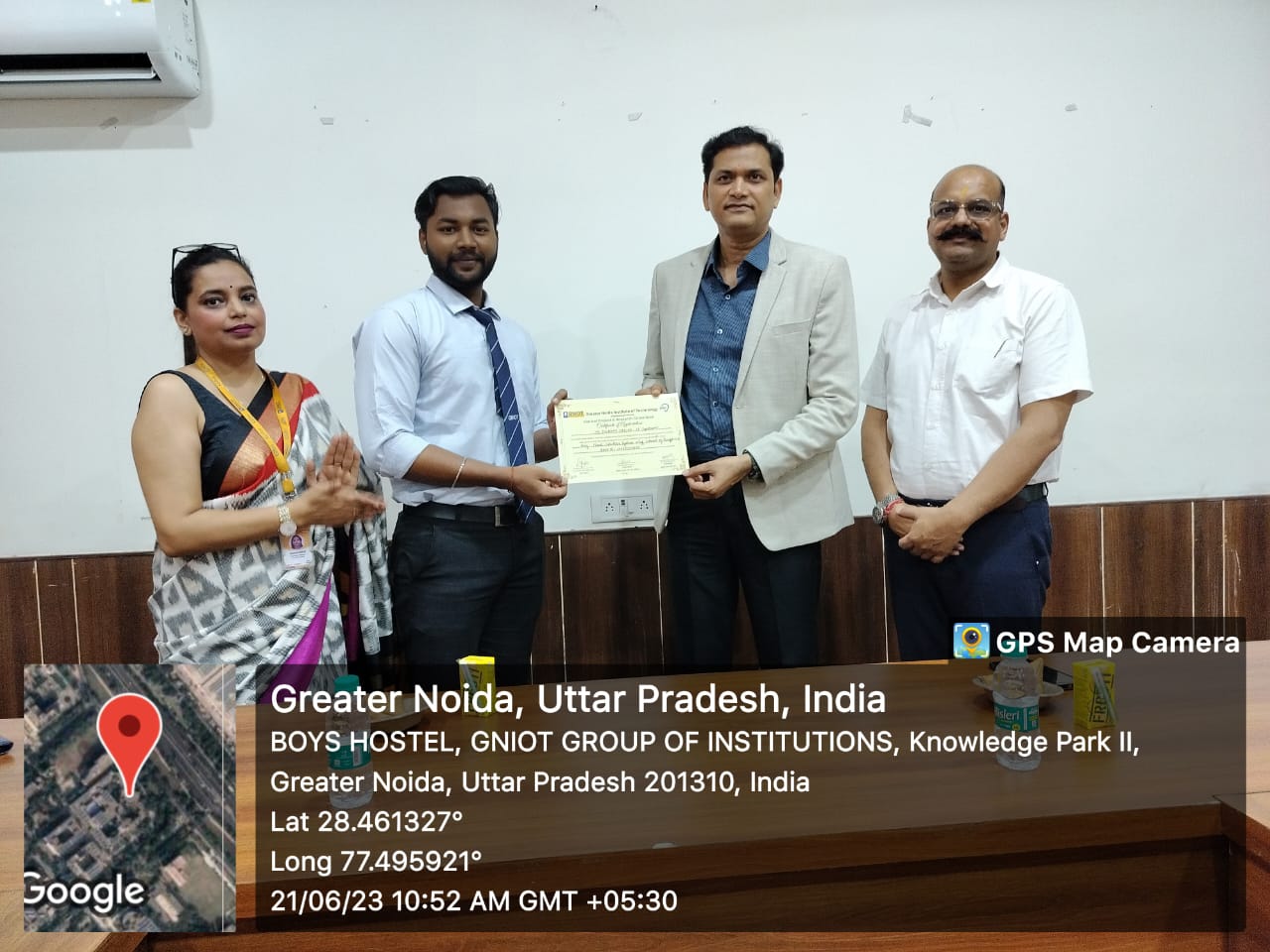 CPRC hosted a momentous award ceremony on 21-06-2023 to honor exceptional students of the Department of Computer Science and Engineering and Department of Information Technology for their groundbreaking patents. The event was graced by the college director, Prof. (Dr.) Dheeraj Gupta, Head of the Department of IT, Prof. Vikas Singhal, Head of CPRC, Dr. Shivani Dubey, and esteemed faculty members, showcasing the remarkable achievements of young innovators.