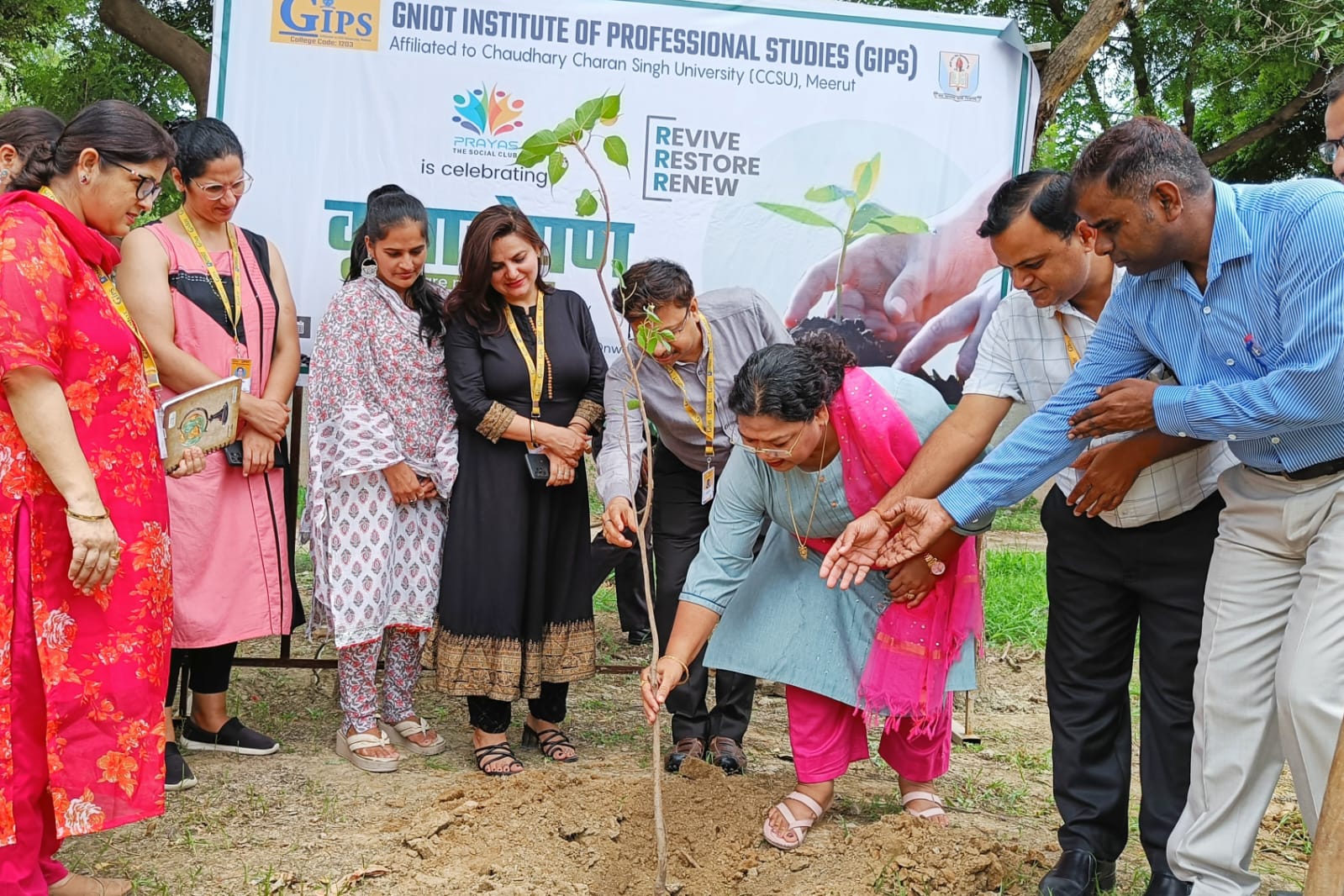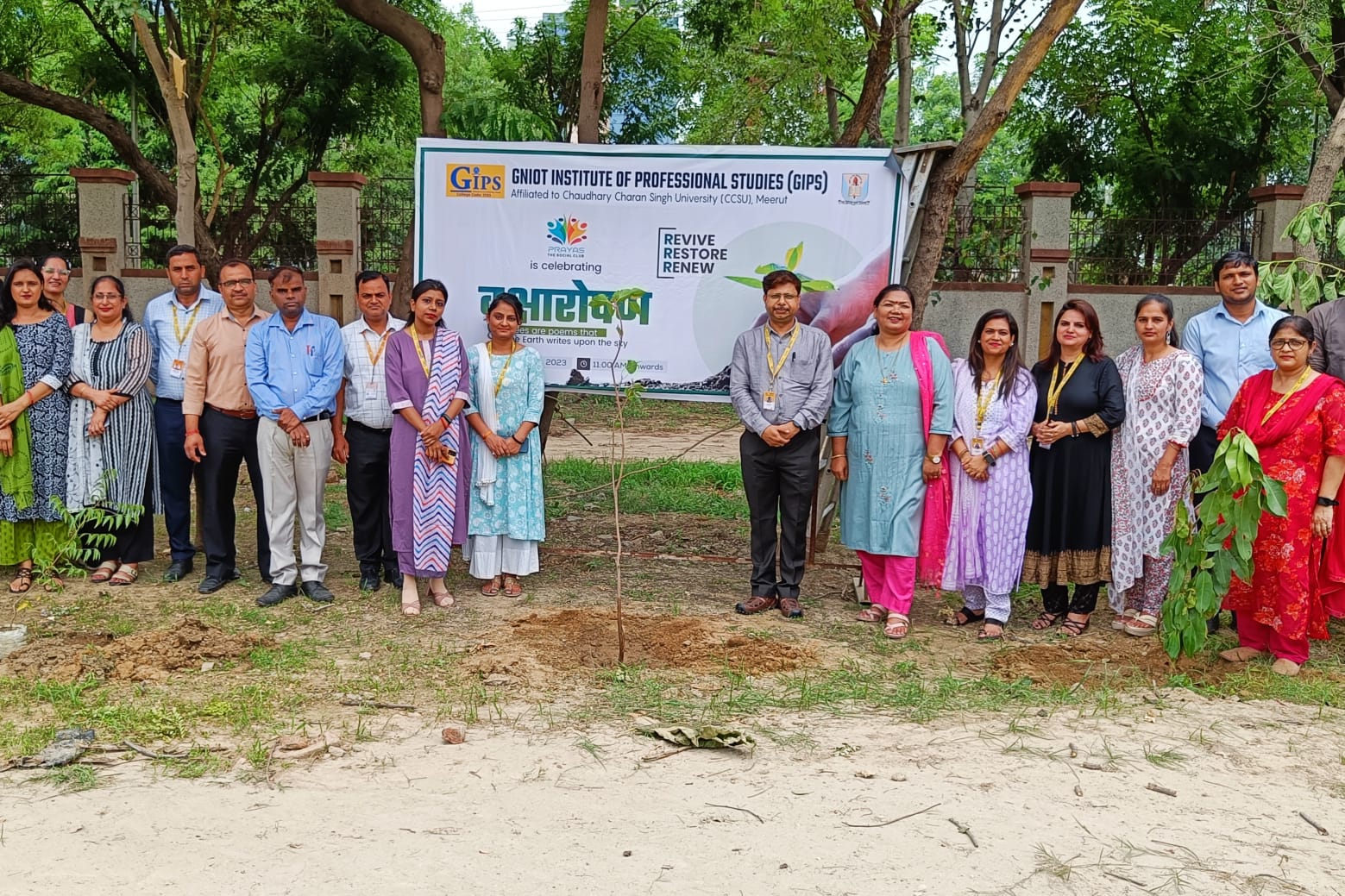 With this noble aim at heart, the GNIOT Institute of Professional Studies orchestrated an event called "Vriksharopan: Tree Plantation Drive," organized by the dedicated members of the Social Club Prayas. The primary objective was to promote environmental consciousness and actively contribute to creating a greener and healthier campus. The sight was truly heartwarming as all faculty members came together, for a sustainable and verdant campus. Led by Prof. Dr. Savita Mohan, the principal of GIPS, the event resonated with the significance of tree plantation and environmental conservation.