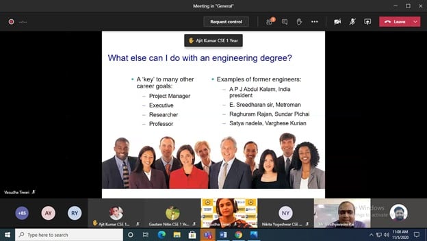 The expert Mr.Vindhyavasini Rai delivered an exemplary session on Engineering Education and Employment prospects. His session was very informative and he covered all aspects of engineering beginning with what is engineering, to what are the different disciplines of Engineering and what are the future prospects of each discipline. He had a long interaction with students also at the end of his session and clarified their doubts.
