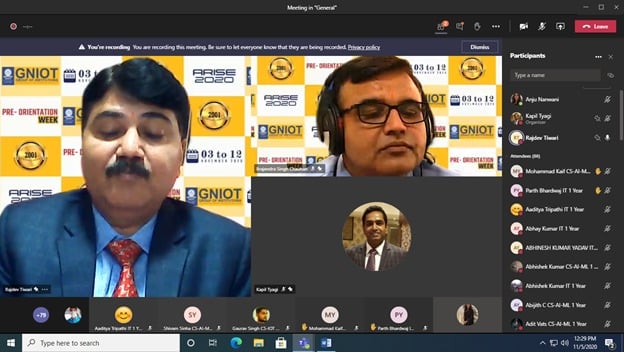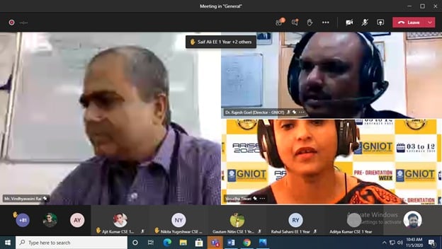 Day 03 of ARISE-2020, PRE-ORIENTATION Program for B. Tech first year started with the welcome address of Dr Rajesh Goel to Mr Vindhyavasni Rai, Senior DGM, Delhi metro rail corporation, Guest Speaker for Session 1 from 10.30 am today.