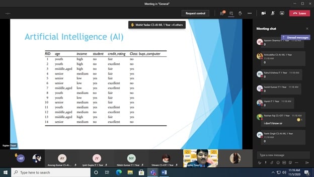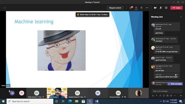 Today's second session was taken up by Dr Rajdev Tiwari, HOD, CSE on" Introduction to Machine Learning and it's Applications". He introduced the