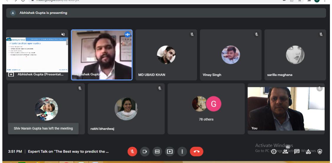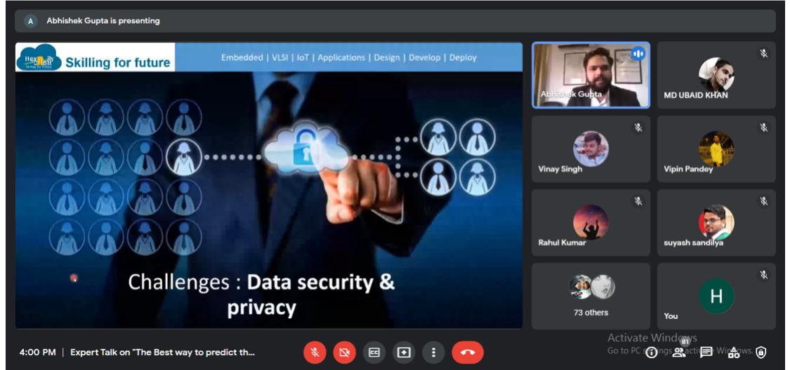 Department of Electronics & Communication Engineering and Electrical Engineering in association with the Institution of innovation of council, GNIOT had organized an expert talk on “The best way to predict the Future is to create it” on 17th February 2022 from 3.00PM onwards till 5.00PM. The Invited Speaker Mr. Abhishek Gupta who is the CEO and the Founder of HexnBit, Noida shared his experience and motivated the students towards entrepreneurship. With the help of visual presentation he showed how this world would look after 25 years and explained to study and observes the market and its requirements. He said observing the requirement is the key to make your idea successful from average. The session was attended by more than 90 students and all faculty members of ECE and EE.