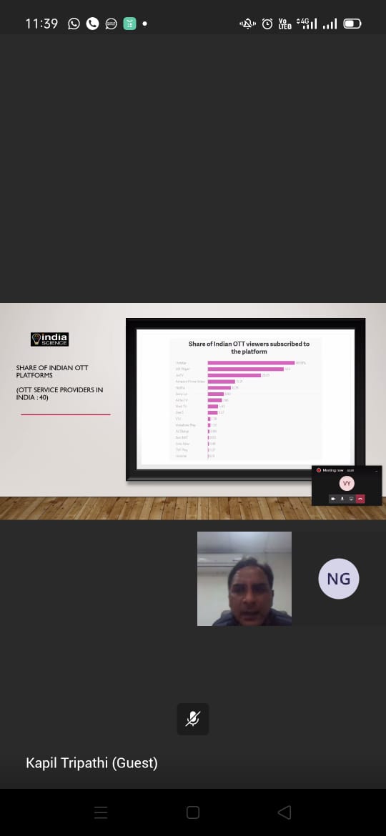 Department of Electrical Engineering, GNIOT GROUP OF INSTITUTIONS, GREATER NOIDA, is organizing a webinar on "Science and Technology Communication through OTT Platforms" on today from 11 AM to 1:00 PM, for the students of EE dept. Mr. Kapil Kumar Tripathi delivered a lecture on above subject. It supports the organization’s goals to strengthen the ties between experts and the organization. It was coordinated by departmental event coordinator Mr. Aneep Kumar. The webinar was addressed by Director GNIOT (Engg. Institute). Dean Academics motivated students of EE and appreciated the EE dept. for such events. This webinar was very informative and interactive for the students and will help them in using OTT Platforms effectively. Around 60 students of 2nd, 3rd and 4th year of EE dept. participated in the event.