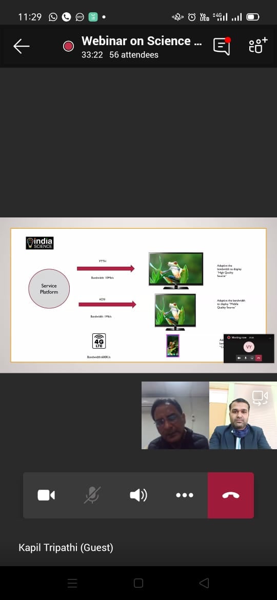 Department of Electrical Engineering, GNIOT GROUP OF INSTITUTIONS, GREATER NOIDA, is organizing a webinar on "Science and Technology Communication through OTT Platforms" on today from 11 AM to 1:00 PM, for the students of EE dept. Mr. Kapil Kumar Tripathi delivered a lecture on above subject. It supports the organization’s goals to strengthen the ties between experts and the organization. It was coordinated by departmental event coordinator Mr. Aneep Kumar. The webinar was addressed by Director GNIOT (Engg. Institute). Dean Academics motivated students of EE and appreciated the EE dept. for such events. This webinar was very informative and interactive for the students and will help them in using OTT Platforms effectively. Around 60 students of 2nd, 3rd and 4th year of EE dept. participated in the event.