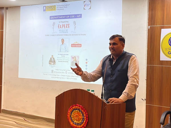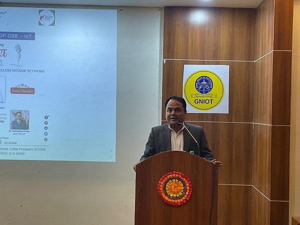 Department of CSE-IOT in association with Institution’s innovations council (IIC) organized an expert talk on "Energy Efficient Wireless Sensor Networks" on 16th November, 2022 from 10:30 AM onwards in Seminar hall,1st floor. Dr.Suneet Kumar Gupta, Professor, Benett University was invited as the eminent speaker. Around 100 students participated of 2nd and 3rd participated in the event, which also created a tech environment in the department. Dr. Suneet Kumar Gupta discussed various iot- based projects in the presentation. Dr Anuranjan Mishra , Dean R & D , Innovation Ambassador , MoE , Govt. of India , also interacted with the students and highlighted the importance of IIC.