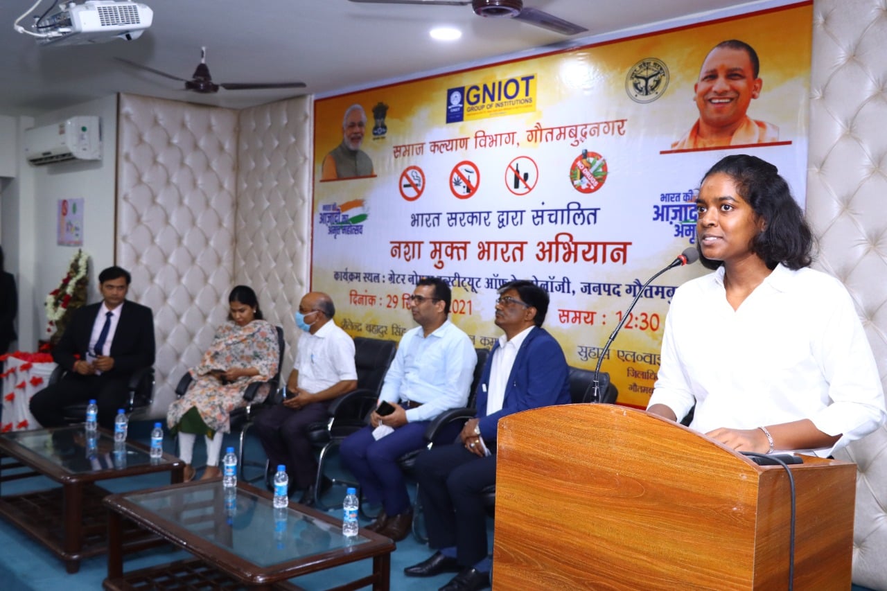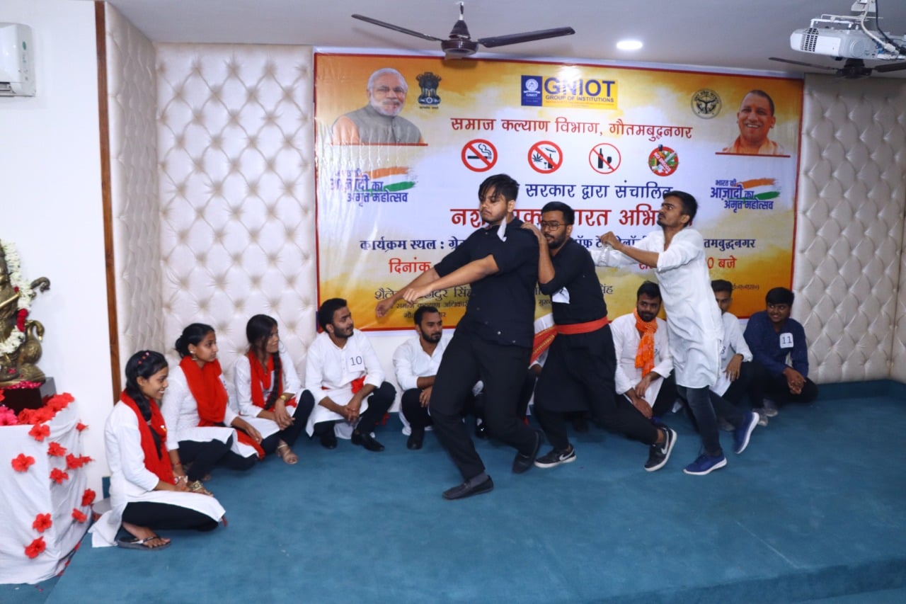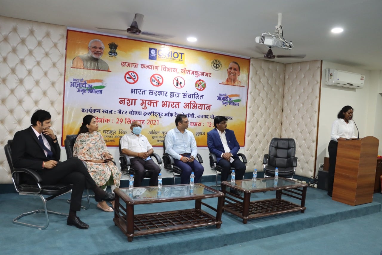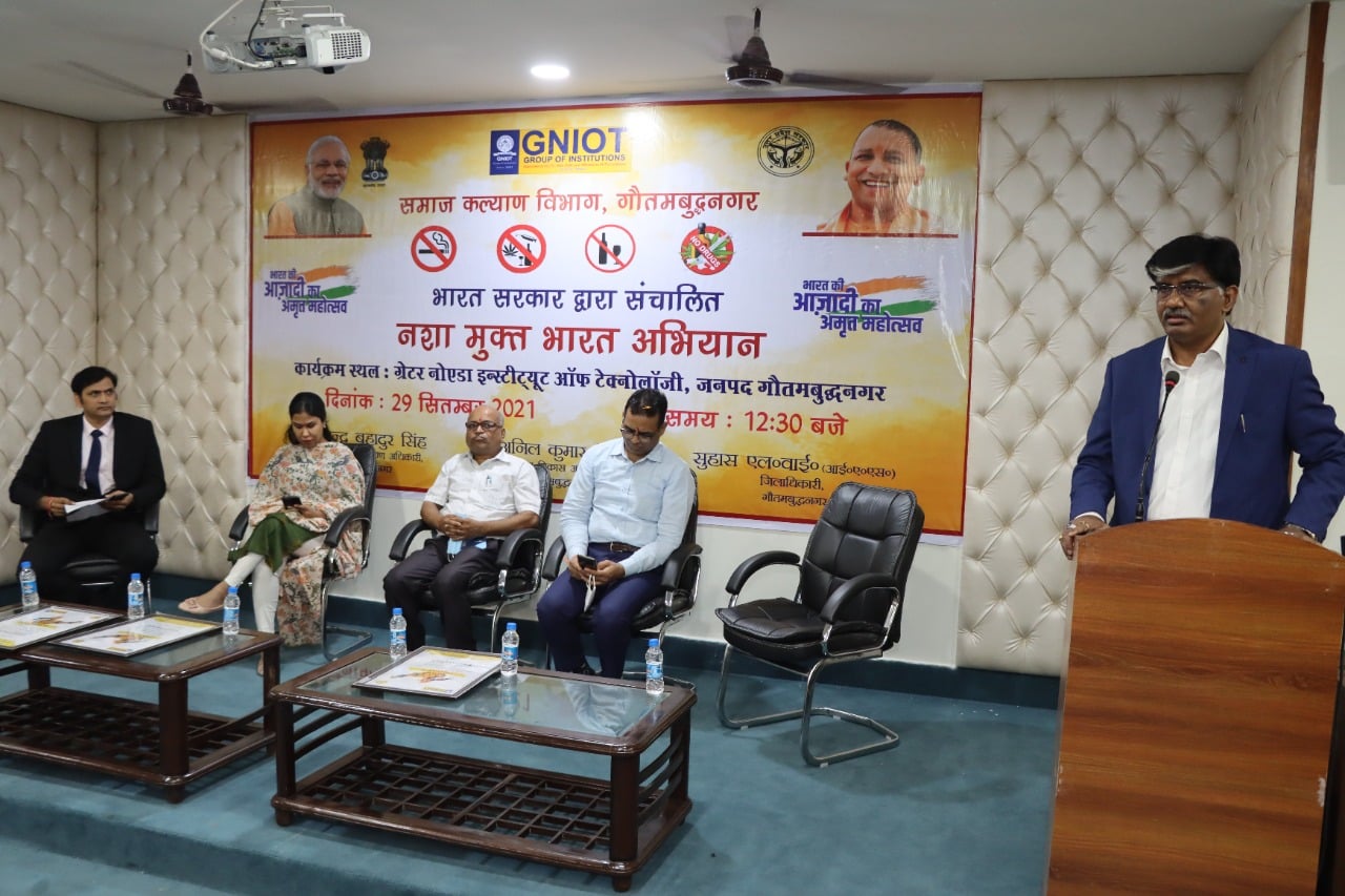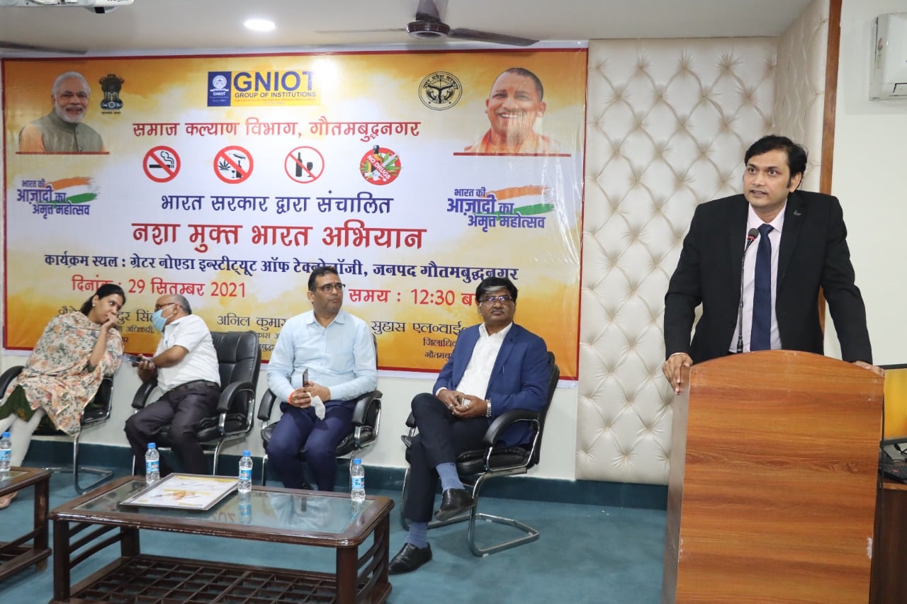 Organized a program on "Drug Free India Campaign" at GNIOT Technical Institute. On 29th September, a program was organized by the Social Club of GNIOT Technical Institute to make people aware under the "Drug Free India Campaign". In which the Chief Guest Shri Shailendra Bahadur Singh (District Social Welfare Officer, Gautam Buddha Nagar), along with Shri Kunwar Singh Yadav (District Panchayati Raj Officer, Gautam Buddha Nagar), Dr. Sweta Khurana (Consultant, Tobacco Control Cell, Gautam Buddha Nagar) He also gave his valuable time. The program was inaugurated by Dr. Pranveer Singh, General Director, GNIOT Group, while welcoming all the guests and shared his resolved thoughts with all the teachers and students in the context of "Drug Free India". Dr. Khurana told with facts that how smoking cigarettes is harmful and many people without caring about it are spoiling their valuable health by consuming cigarettes, bidis and gutka. Shri Kunwar Singh also very effectively suggested the way to be healthy to everyone and made India aware to make India drug free. Shri Shailendra Bahadur Singh ji while expressing his anguish towards the society said that what a person eats, its effect not only on his body but also on his mind. He inspired everyone to make a drug free society by giving many examples. In a meaningful discussion of the program, Dr. Dheeraj Gupta, director of the institute, while keeping his brilliant views, advised everyone not to take drugs. In the last phase of the program, the students of Social Club and Cultural Club made the program organized on "Drug Free India Campaign" meaningful by giving a brilliant presentation of street play in this episode. In which he not only portrayed the society but also gave the message to every citizen to stay away from drugs. At the end of the program, Mr. Manoj Kumar Gupta while expressing his gratitude to all the guests, not only appreciated the art-skills of all the student artists of the street play team, but also paid his gratitude to all the associates indirectly and indirectly in making the program a success.