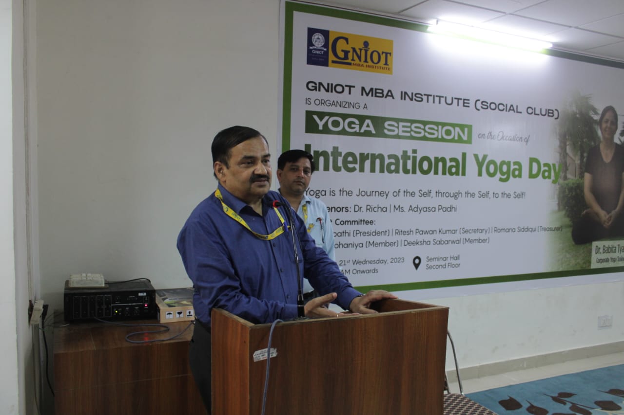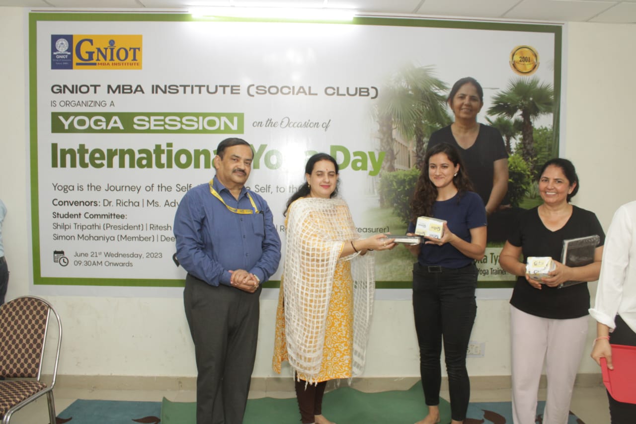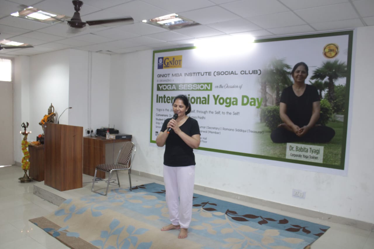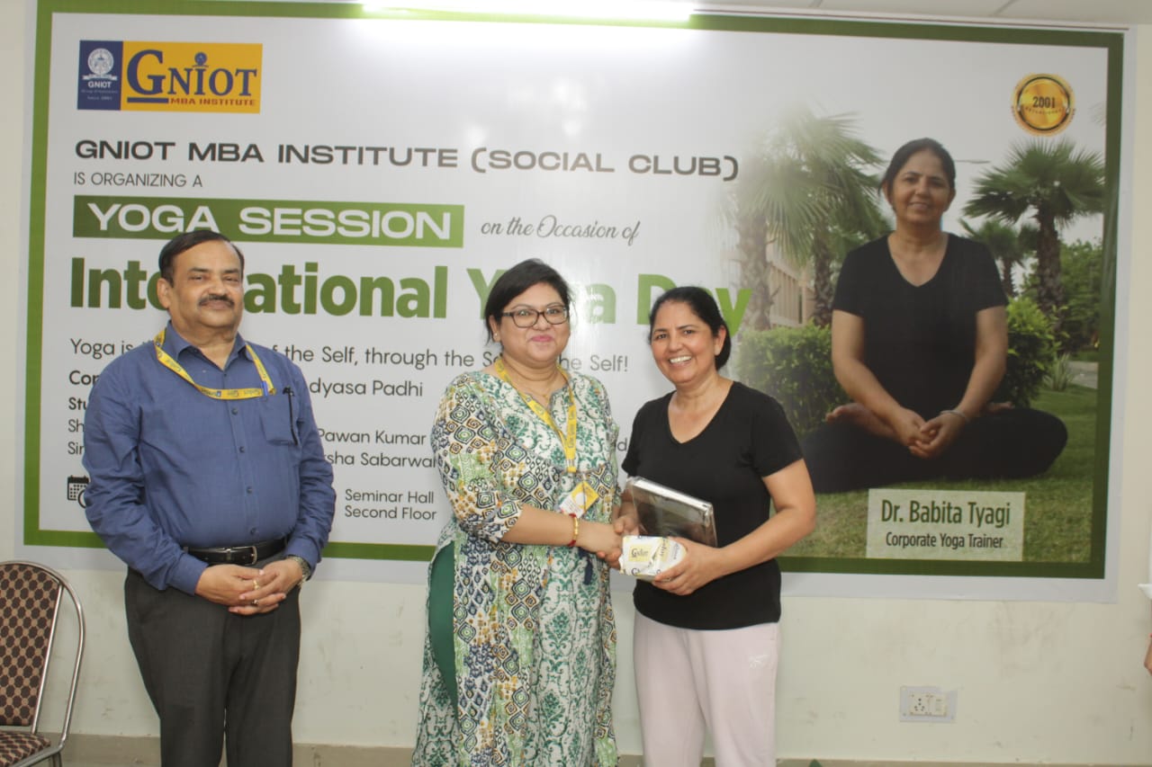 GNIOT MBA Institute organized an energizing yoga session led by an esteemed corporate yoga trainer, Dr. Babita Tyagi. The session aimed to promote physical and mental well-being among the participants, offering them a holistic approach to wellness.