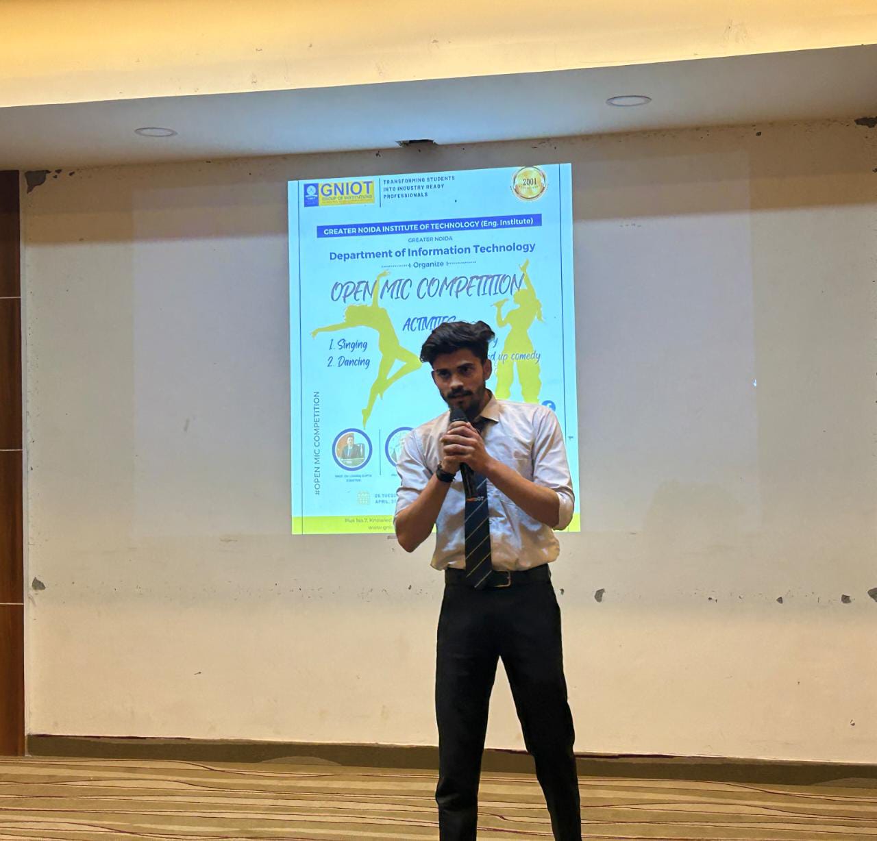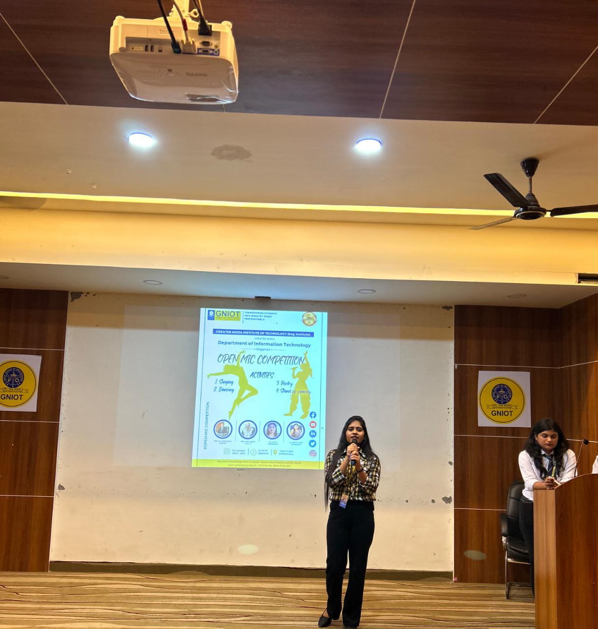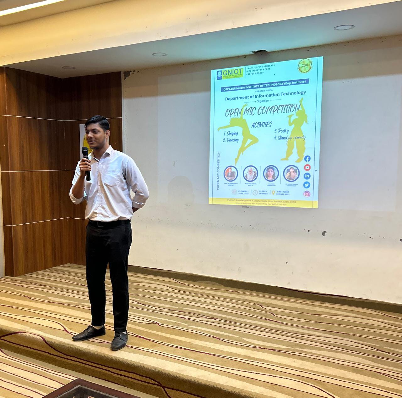 The Department of Information and Technology, GNIOT organized an "Open Mic Competition" on the 25th April 2023, under the banner of departmental cultural club with a footfall of about 90 students in the first floor Seminar Hall.