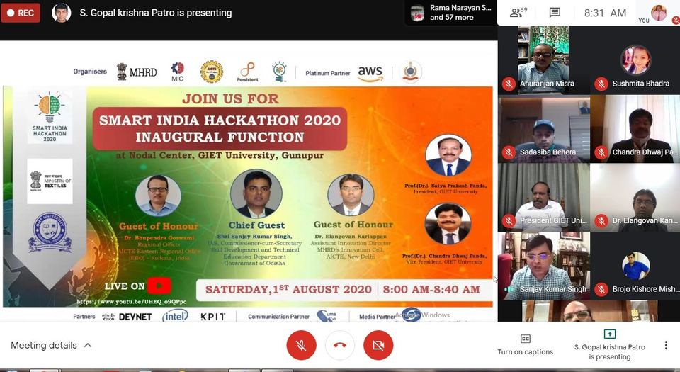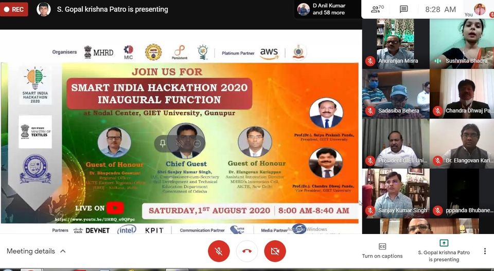 Dr Anuranjan Misra, Dean Academics GNIOT, had attended the Inauguration of ‘Grand Finale of Smart India Hackathon 2020’ online. Inauguration session was addressed by Dr. Abhay Jere, Chief Innovation Officer, MHRD’s Innovation Cell, Shri V.S.K Kaumudi, IPS, Director General, BPR&D, Prof. Anil Sahasrabudhe, Chairman AICTE, Hon’ble Minister of State HRD, Shri Sanjay Dhotre, Hon’ble Minister of HRD, Shri Ramesh Pokhriyal ‘Nishank and Dr Rajive Kumar, Member Secretary,AICTE. The event had continued for 4 days(1-4 August 2020 ). Hon’ble Prime Minister had addressed the ‘Grand Finale of Smart India Hackathon 2020’ on 1-08-2020 at 4:30 PM. Dr Anuranjan Misra, Dean Academics, GNIOT, Greater Noida was appointed one of the Judges of ‘Grand Finale of Smart India Hackathon 2020’.