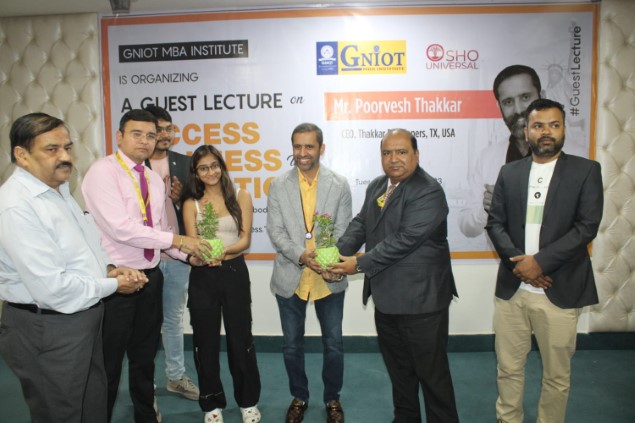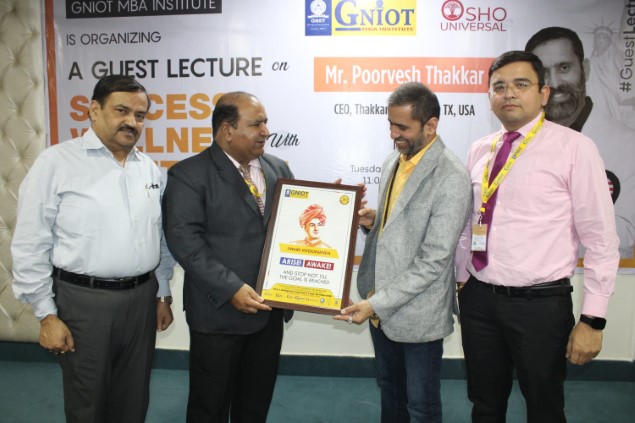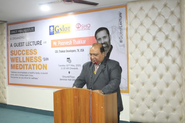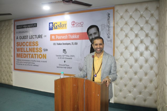 GNIOT MBA INSTITUTE had organized a Guest Lecture on "Success, Wellness with Meditation." This session was taken by well renowned Motivator and guide Mr. Poorvesh Thakkar from TX USA.
