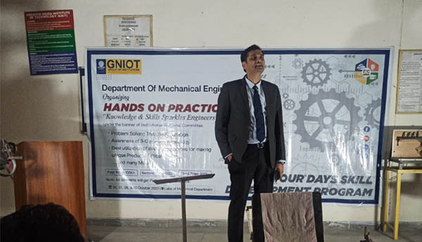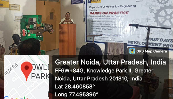 Mechanical Engineering department is organized a four days skill development program “ HANDS ON PRACTICE “ to enhance the practical knowledge and skills of Mechanical Engineering students. This program emphasized on Critical Thinking for our budding engineers. This program is also inline with the industry 4.0 technologies such as 3D printing, IoT. The whole prograam was a great sucess as the students had learned skills and practical knowledge through: Problem Solving Knowledge, Best utilization of available resources for making unique Products---Critical Thinking. And Awareness of 3-D printing Technology.