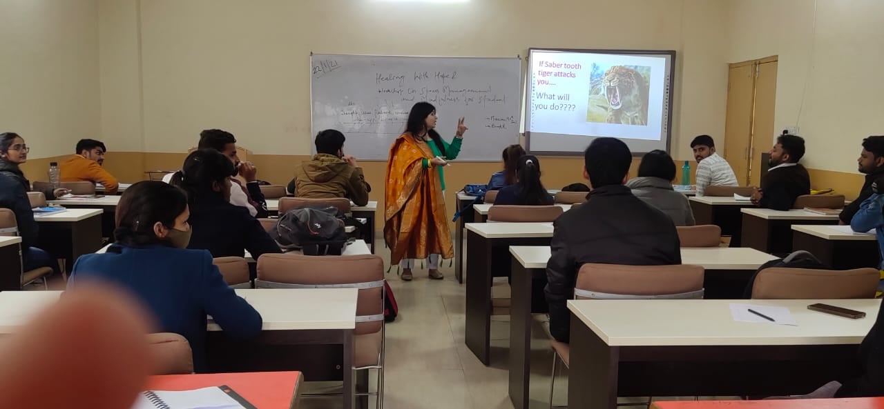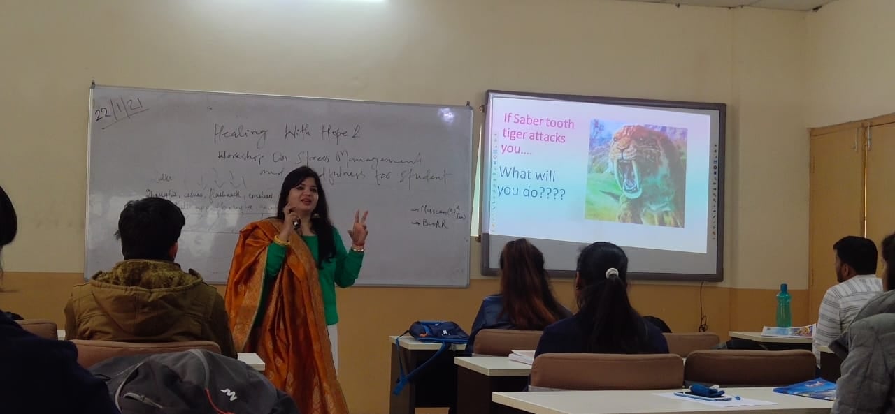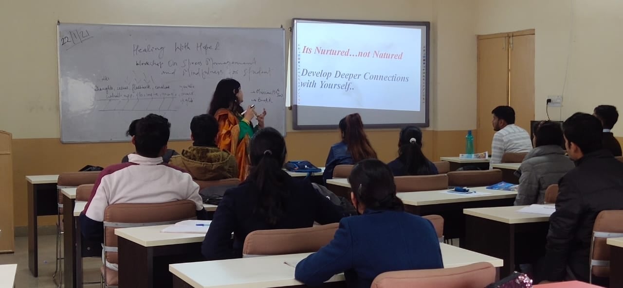 Under the banner of PERFORMANCE IMPROVEMENT PROGRAM, 'Healing with Hope- A workshop on Stress Management & Mindfulness for Students' was conducted for students. Resource Person for the workshop was Dr. Ruchi Rayat (Area chair-HR). The key take-aways of the workshop were: