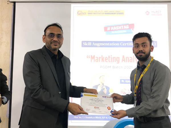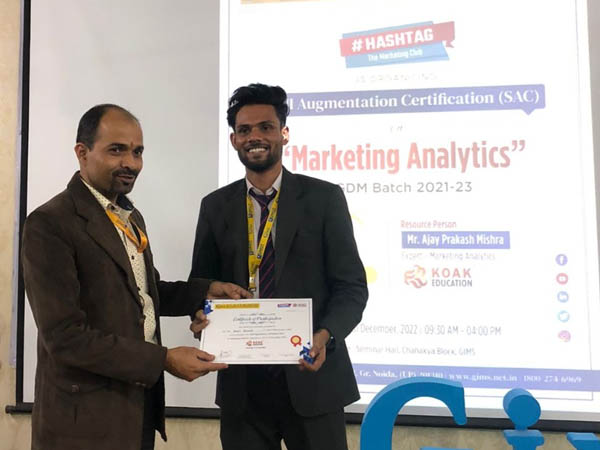 Hashtag Club-The Marketing Club of GIMS organised Skill Augmentation Certificate(SAC), “Marketing Analytics” for PGDM II Year students on 12-13th December 2022. The resource person Mr. Ajay Prakash Mishra of KOAK Education educated the students of fundamentals of marketing analytics.