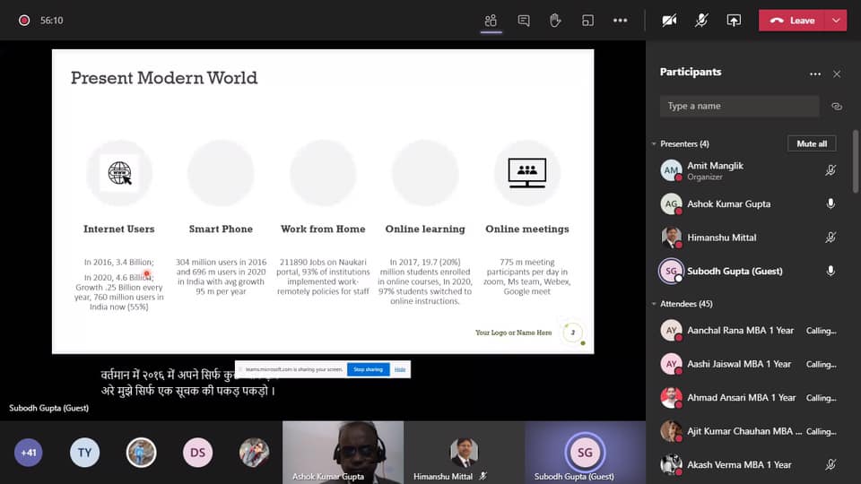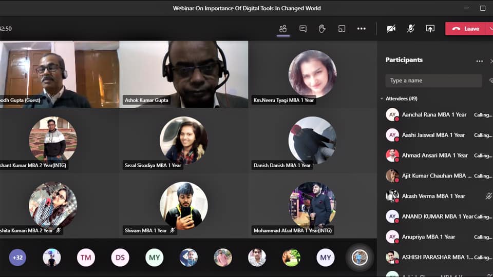 *GNIOT-MBA Institute* hosted a webinar on * “Importance of Digital Tools in Changed World.” * on *28th January 2021*. The webinar started with welcome address by Director of the Institute Dr. Savita Mohan. The detailed session was carried out with the eminent speaker of the webinar *Mr. Subodh Gupta*. Mr. Subodh Gupta is a Computer Science and Engineering graduate (1984) from IIT, Kharagpur; Postgraduate Diploma in Training and Development from ISTD, Delhi (1988) and Humbert Humphrey Fellow from Cornell University, USA (2000).