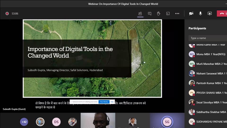 A webinar on “Importance of Digital Tools in Changed World”