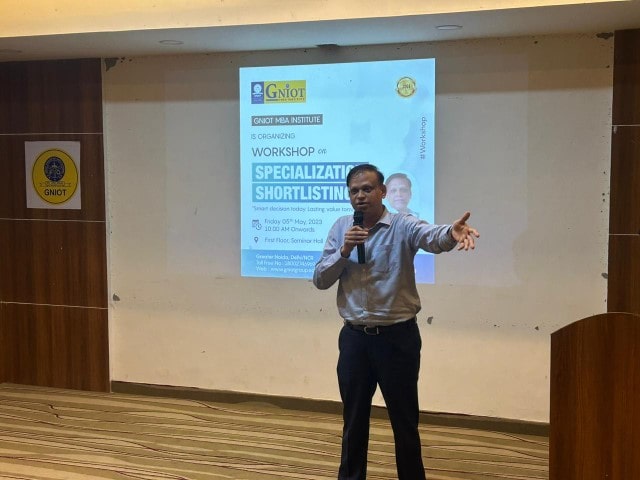 GNIOT MBA INSTITUTE had organised a Workshop today (05.05.2023) on Skill to shortlist the Specialization. "Smart decision today, Last value for tomorrow!" The resource person for this workshop was well established HR head Mr. Debaprasad Ray who proves that the above mentioned saying is practically true.