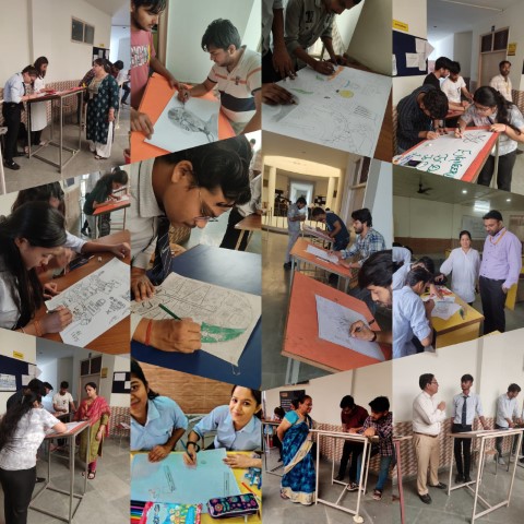 B.Tech. First Year (Group A) organized a poster making competition on 27th May 2023, Saturday. It's great to hear that about 50 students actively participated in the poster making competition. The competition focused on four topics: Cybersecurity, Advantages and Disadvantages of Technology, AI - Future Picture of Technology, and Engineering in day-to-day life. The event was organized by Dr. Shweta Tyagi and coordinated by Mr. Rishi Kumar Singh, with the support of Dr. Kirti Upadhyay, Mr. Pradeep Baranwal, Ms. Nidhi Simon, and Mr. Naveen Kumar.