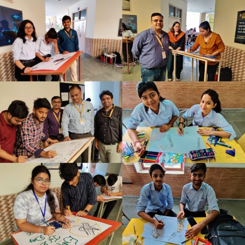 Following the completion of the poster-making session, the dignitaries engaged in an interactive session with the students. Dr. Sanjay Katiyar addressed the students, commending their enthusiasm and creativity in addressing the given topics. He highlighted the significance of such events in enhancing the student’s understanding and practical application of the subjects.