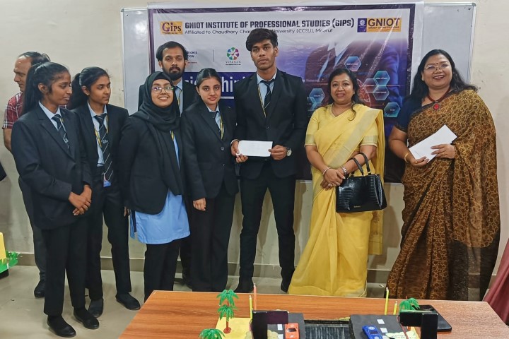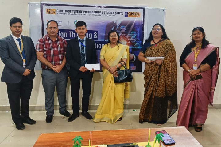 Creativity and innovation are the driving forces behind progress and positive change. Institute Innovation Council in association with Vipanan: Marketing Club of GIPS today organized the “Design Thinking & Prototype Exhibition” under the effective guidance" and supervision of Principal Prof. Dr. Savita Mohan, wherein students of GIPS did a creative display of their innovative ideas in the form of prototype development and theoretical representation of various concepts. The esteemed judges of the event were Ms. Sapna Gupta (Member Management GNIOT Group of Institutions), Dr. Anuranjan Mishra (Dean R&D), Mr. S.D. Nautiyal (Head Librarian GNIOT), Dr. Ruchi Rayat (Dean-PGP), Prof. Gagan Varshney, Prof. Vasudha Tiwari, and Prof. Praveen Rajpal.