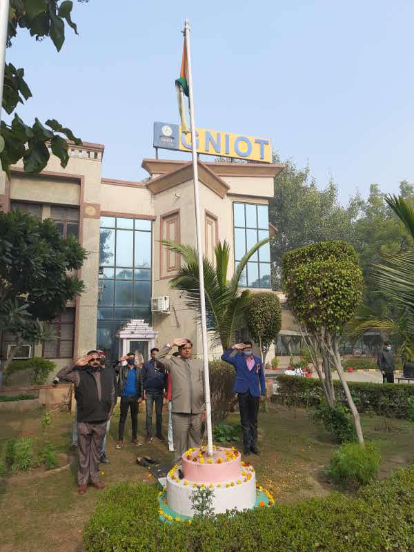 दिनांक 26 जनवरी को जीएनआईओटी ग्रुप ऑफ़ इंस्टीटूशन्स में 72वां गणतंत्र दिवस मनाया गया। राष्ट्र गौरव के इस अवसर पर संस्थान के वाईस चेयरमैन श्री बजरंग लाल गुप्ता जी ने तिरंगा झंडा फहराते हुए सभी शिक्षकों एवं विद्यार्थिओं को गणतंत्रता दिवस की शुभकामनाएं दी। उन्होंने संविधान के विभिन्न मूल्यों को साझा करते