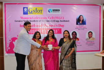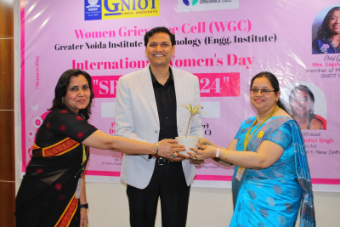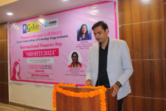 Women Grievance Cell (WGC), GNIOT (Engg. Institute) is celebrated International Women's Day SRISHTI-2024 on 15th March 2024. Different games, activities and a special talk was organized to build motivation and confidence of teaching and non teaching female staff. The motive of this program was to build a workplace that honors and uplifts every women's contribution. A short video on SHE for HER was screened to the audience. The chief guest of the program, Smt. Sapna Gupta Ji, Member of Management, shared her opinion about the gender equality and empowerment all women which is very important that ensures inclusiveness in quality education to promote lifelong learning.