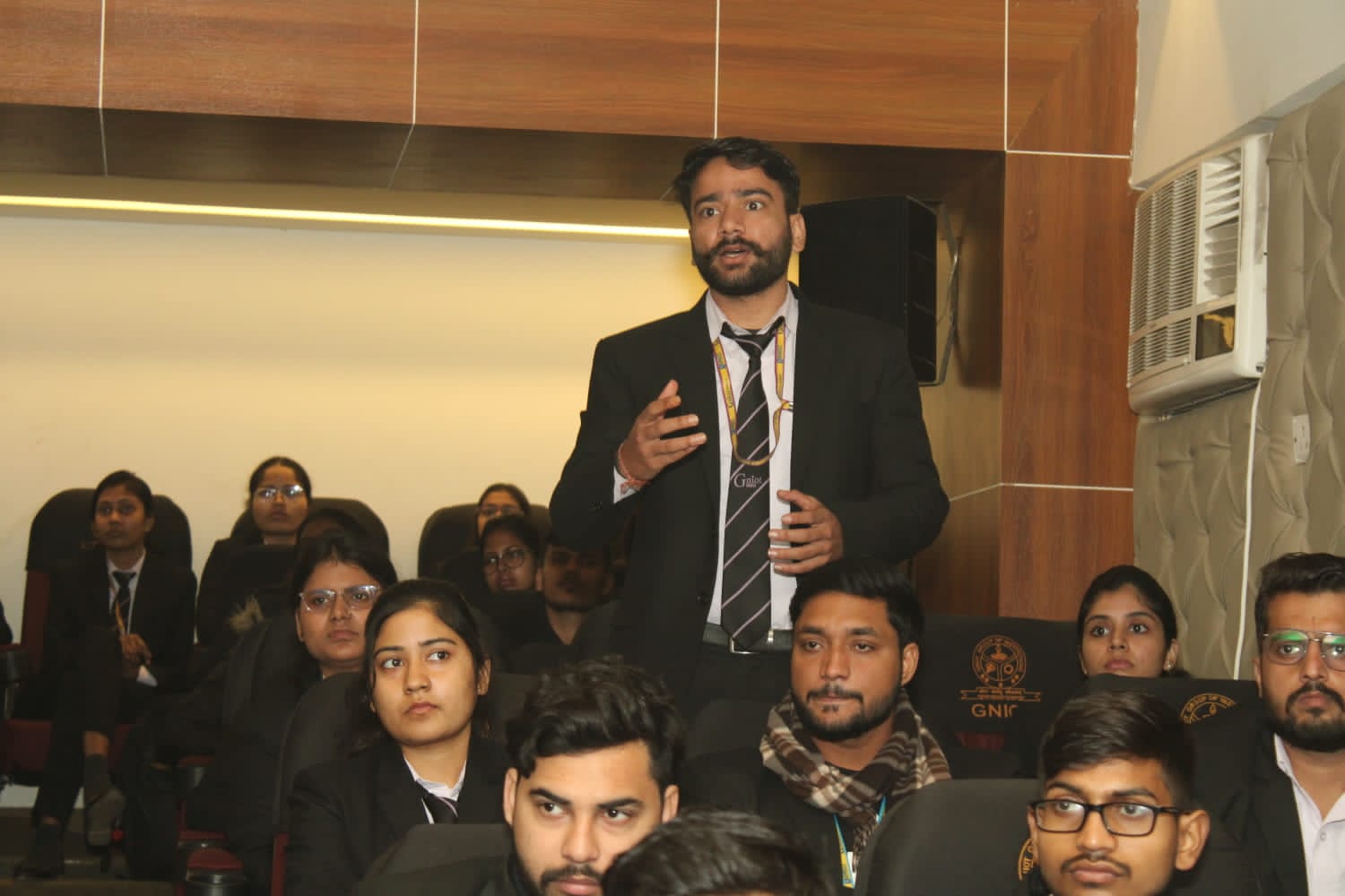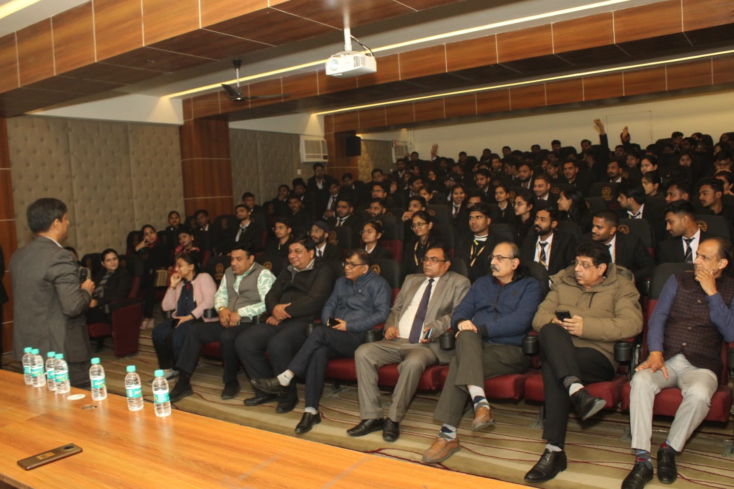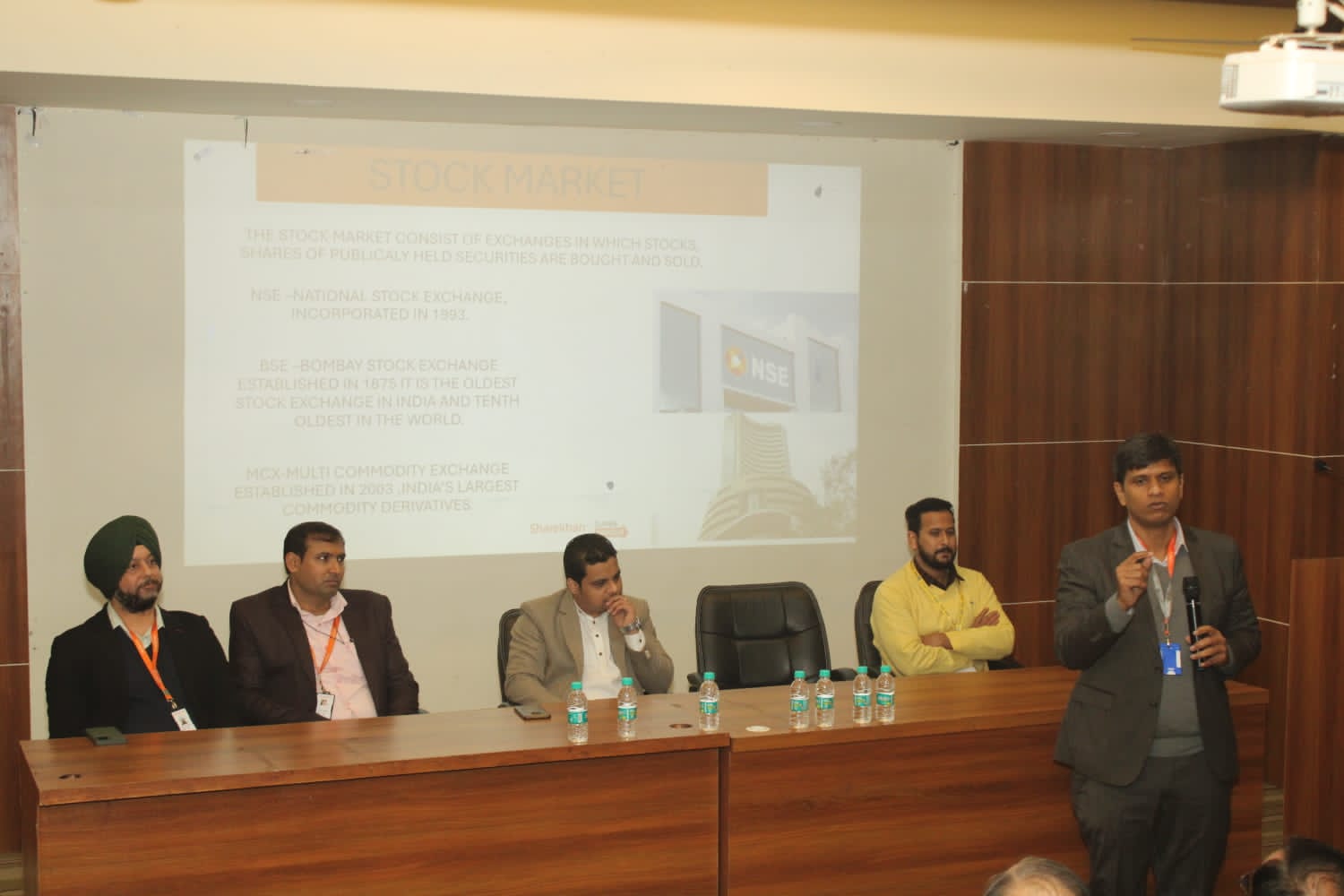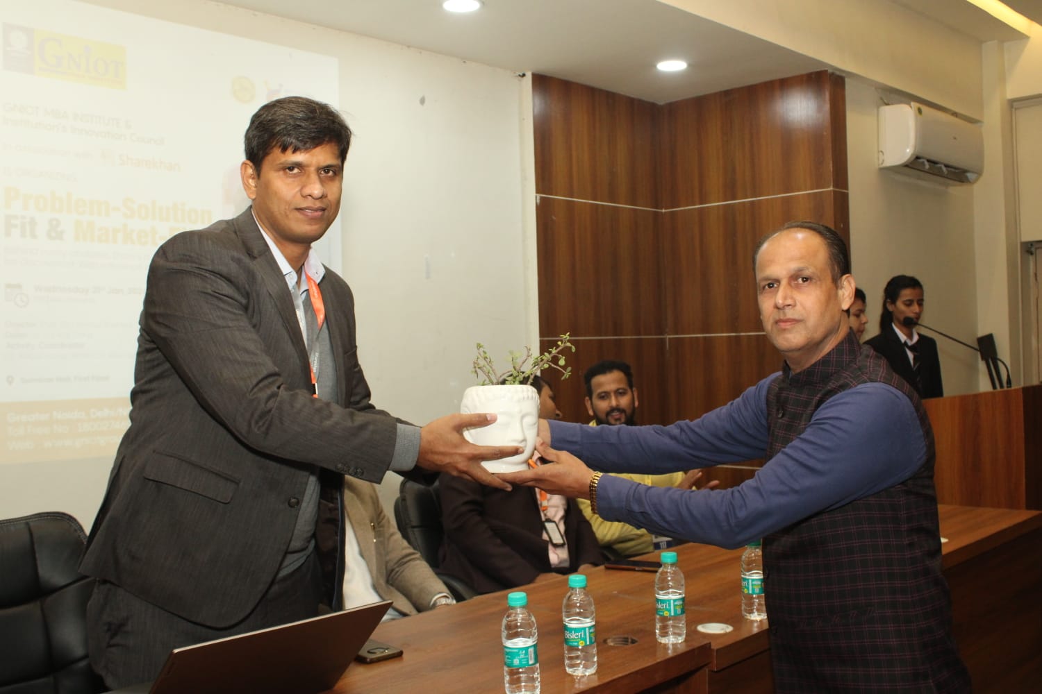 Under the auspices of Institution's Innovation Council GNIOT MBA , a guest lecture on the topics of Problem Solution- fit and Market- fit was organized. The speakers included Mr. Amit Pal Singh, Regional Head , Mr. Saurabh, Derivative Specialist, Mr. Sumit Sharma, Senior Territory Manager, and Mr. Anand Mohan, Branch Manager at Sharekhan. The event commenced with an illuminating lamp-lighting ceremony and a warm welcome from the students. Each of the four speakers delivered articulate presentations, providing valuable insights into stock market strategies. Engaging with an audience of approximately 150 students, the session offering a comprehensive exploration of the intricacies of the stock market. The speakers expounded on various tricks and techniques, sharing a plethora of information beneficial to the aspiring investors present. The session provided a thorough understanding of the stock market, leaving participants enriched with knowledge.