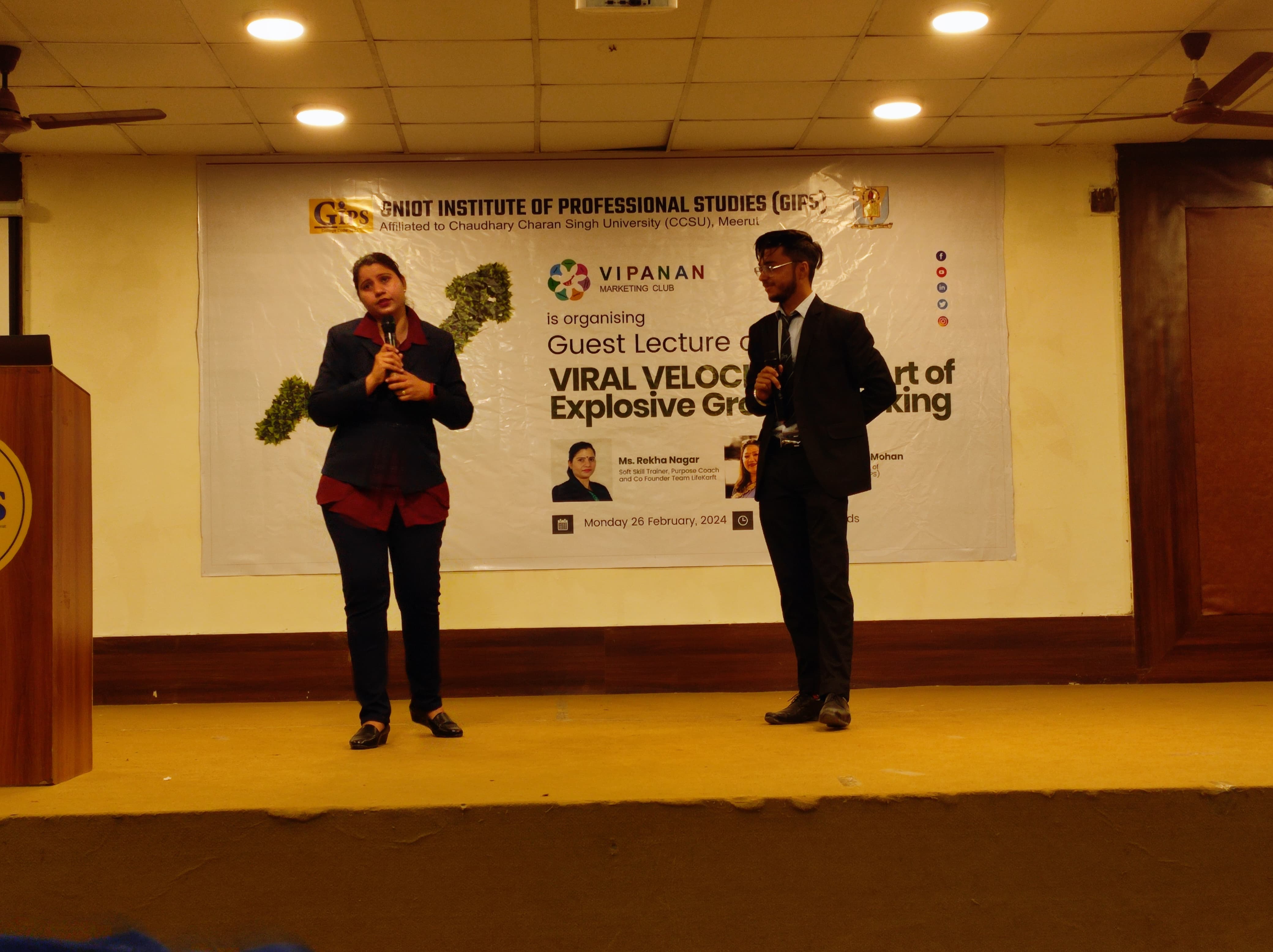 In today's marketing landscape, success hinges not on the products you create, but on the narratives you weave. The Marketing Club of GNIOT Institute of Professional Studies organized a captivating guest lecture titled 'Viral Velocity: The Art of Explosive Growth Hacking.' Leading the discourse was Ms. Rekha Nagar, a seasoned soft skills trainer, purpose coach, and co-founder of Team Lifekraft.