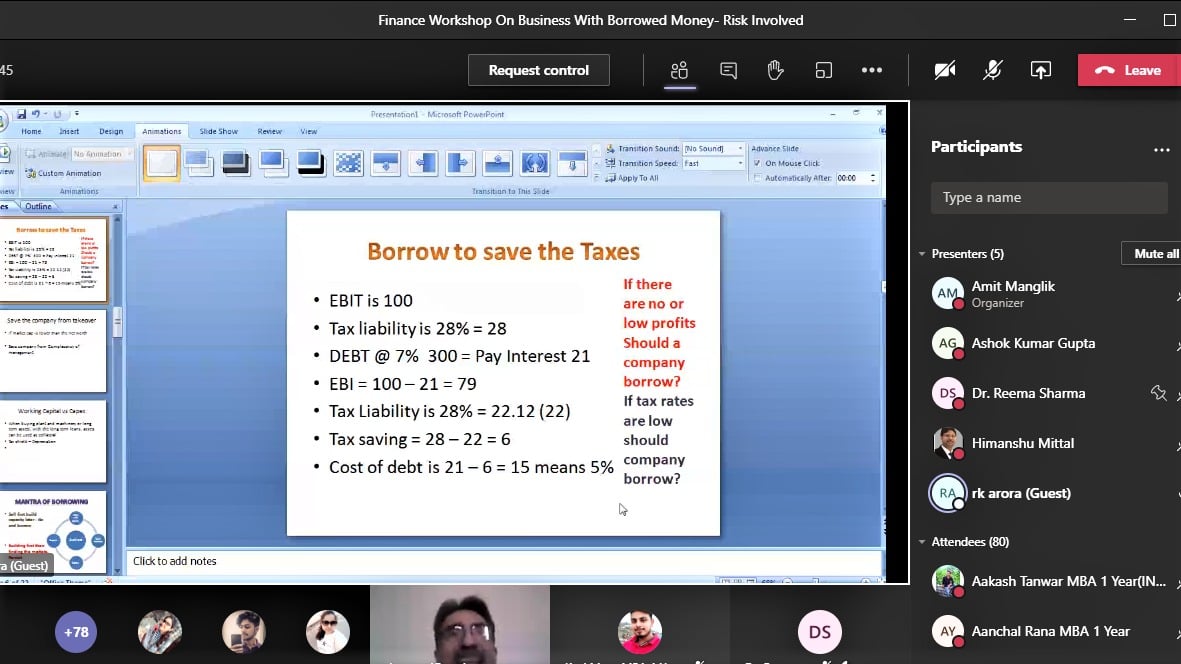 Mr. Rajender Arora started the session with the case study of MRF , afterward he shared his knowledge with the students intensely. Mr. Rajendra Arora discussed about the equity and borrowed fund a