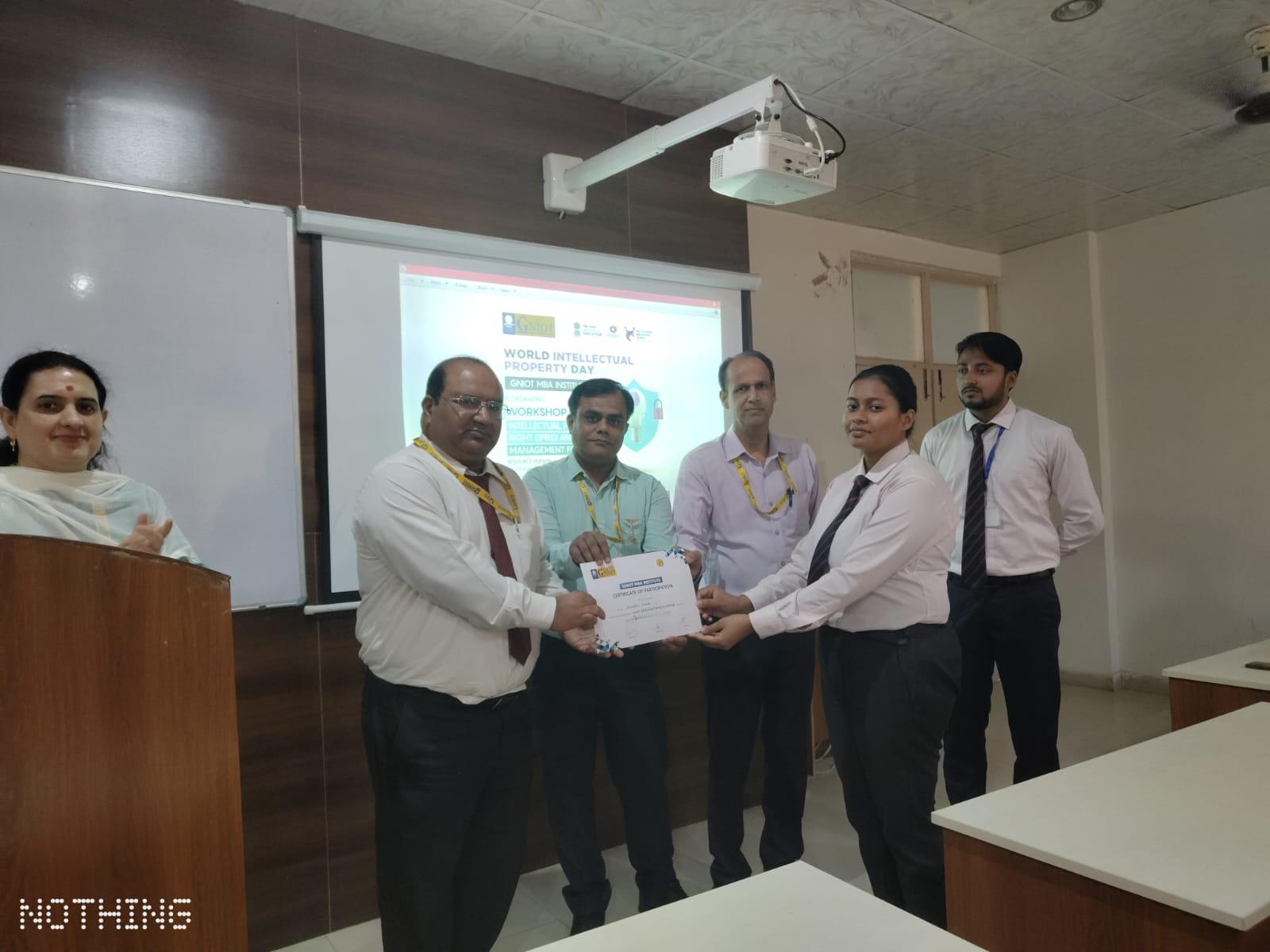 GNIOT MBA INSTITUTE had organized a Workshop on “Intellectual Property Right and IP Management for startup” under the umbrella of IIC today at MBA Institute. The resource persons for this workshop were Dr. Pramod Shrivastav and Prof. Praveen Rajpal. The resource persons talked in length about Intellectual property referring to it as creations of the mind, such as inventions, literary and artistic works, symbols, names, and designs, which are protected by laws and regulations. It also provides the creators with exclusive rights to use and commercialize their creations for a certain period, thereby encouraging innovation and creativity.