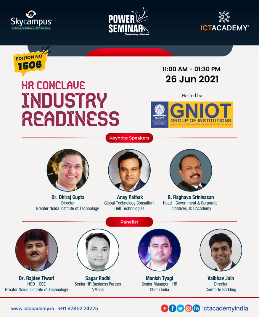 Department of Computer Science and Engineering, GNIOT is going to host a Mega Event by the name HR Conclave. In this conclave industry experts from corporate like Dell Technologies, VMock, Chetu India and Comforto Wedding are going to enlight our students by solving their curiosities. Conclave will be held on 26th June 2021 in online mode.