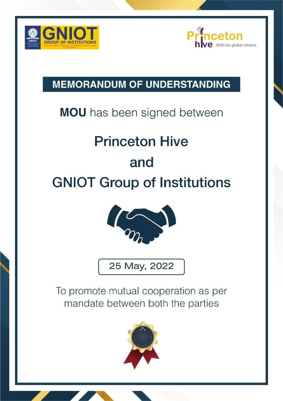 Mark this day(25th May, 2022)as this day highlights the Establishment of Academic Collaboration between RKLICK SOLUTIONS PVT LTD(Princeton Hive: US based COMPANY)& GNIOT group of Institutions held at GNIOT Campus,