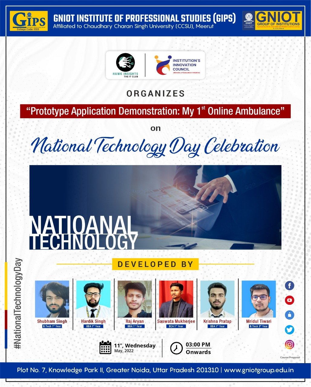 Hereby, is a pleasure to invite you in the demonstration program of the application organised by Greater Noida Institute of Professional Studies and motivate a new idea and innovative APP