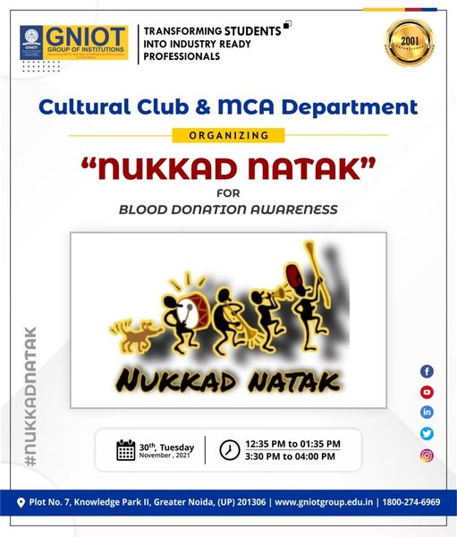 GNIOT Cultural Club & MCA Department Organizing "Nukkad Natak" for Blood Donation Awareness.