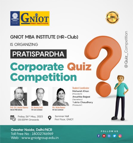 GNIOT MBA Institute is organizing an exciting corporate quiz competition called "Pratispardha" on 26.05.2023. This event promises to test students business acumen and knowledge while providing a platform for networking and learning.