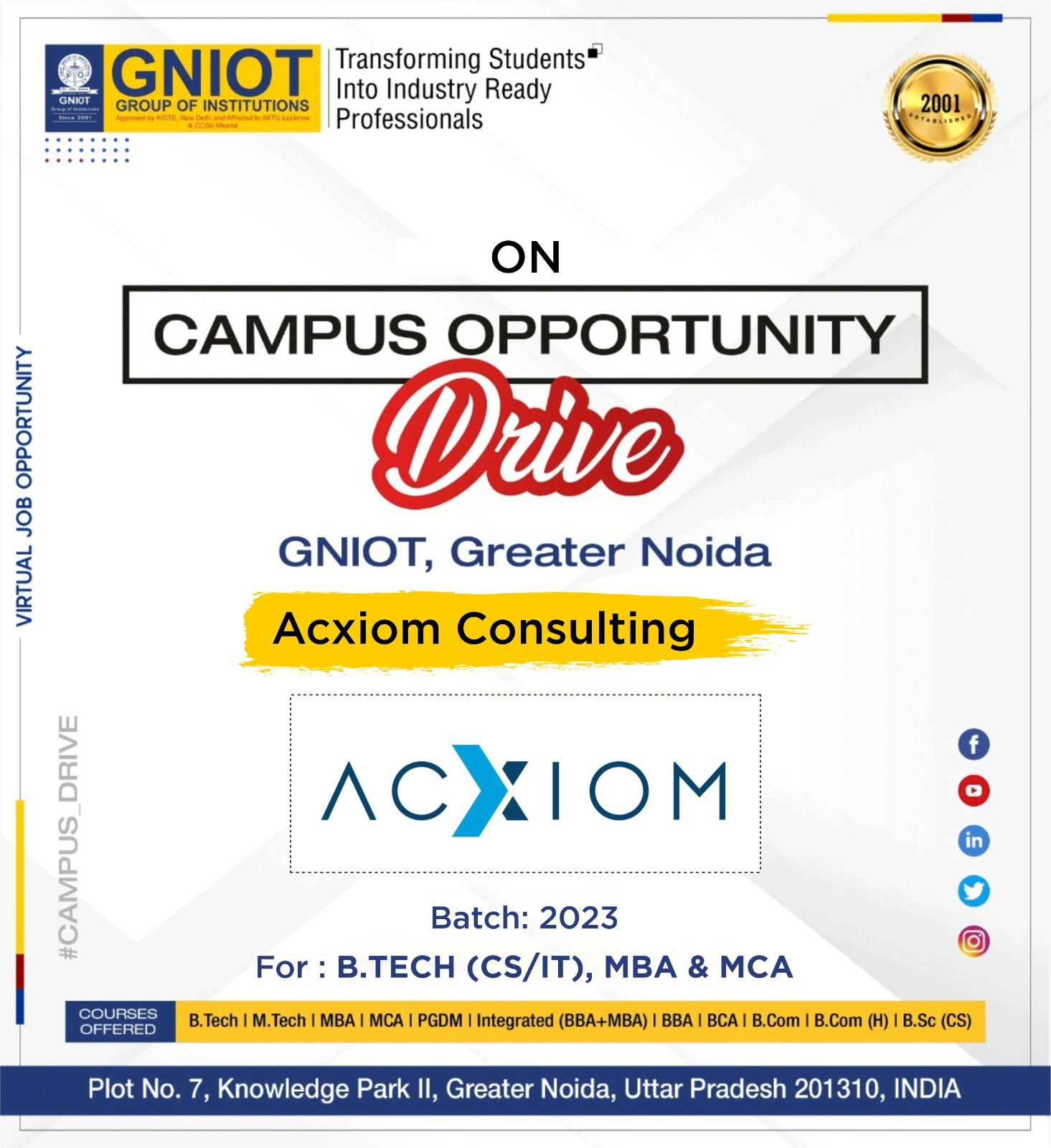 Saturday Venue:- GNIOT Campus Time:- 10:00 AM
