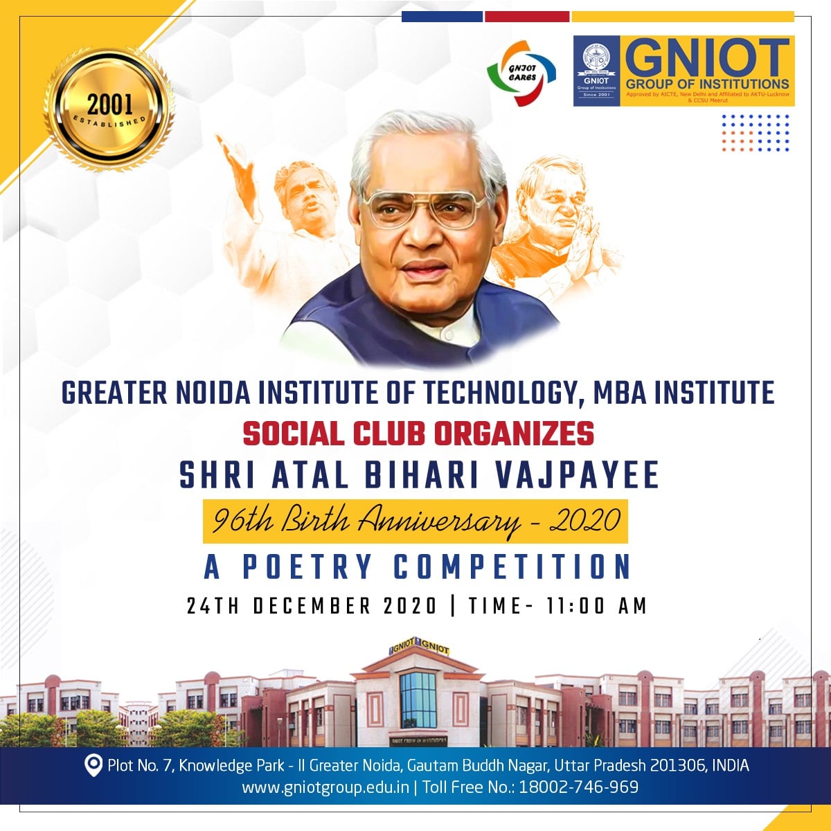 In honor of former Prime Minister Late Atal Bihari Vajpayee, GNIOT MBA INSTITUTE puts forth a poetry competition for the management students.