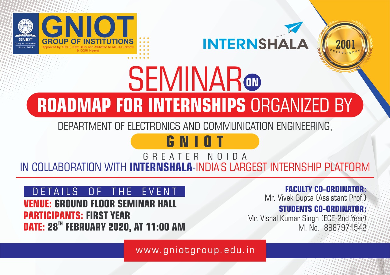 Seminar on Internship Organised by Department of ECE, GNIOT in collaboration with Internshala.