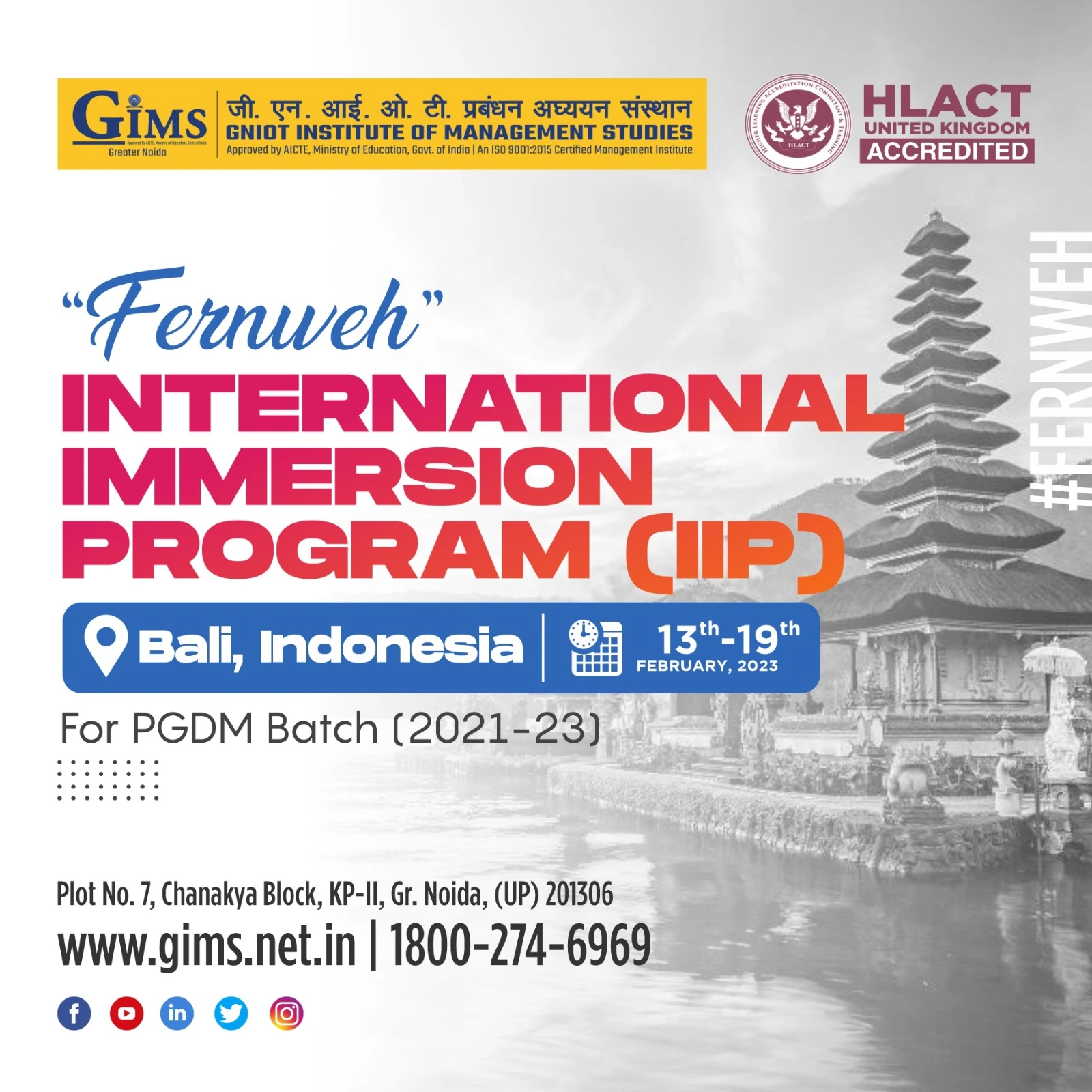 GIMS, Greater Noida's III batch of Fernweh: The International Immersion Program (IIP) will be flying on February 13, 2023 to Bali, Indonesia to February 19, 2023, taking the PGDM students to explore the rich heritage of Indonesia.