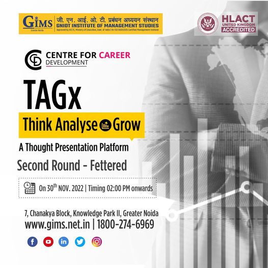 Think Analyze and Grow (TAGx) by CCD, GIMS, Greater Noida is all set for the second round of the competition - Fettered, on November 30, 2022, 2:00 PM onwards.