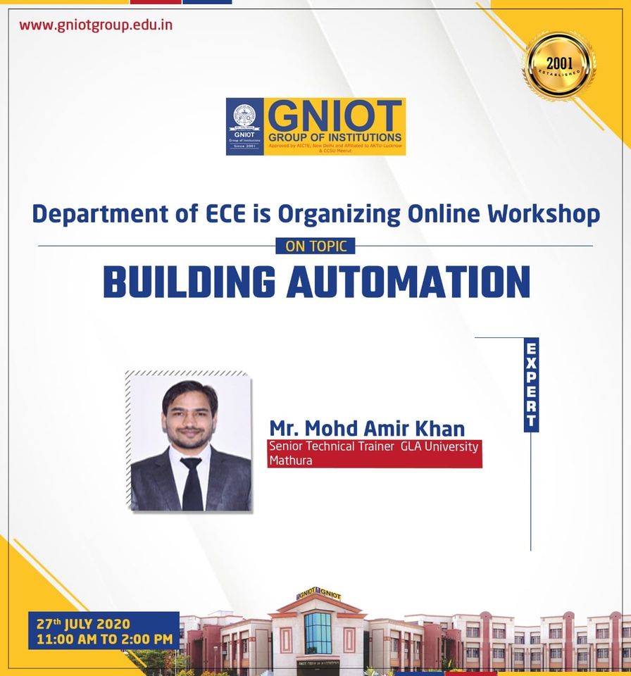 A building automation system is designed to be convenient, increase safety, and save energy. Keeping this in view, Department of Electronics and Communication Engineering is organizing an online one day workshop to strengthen students on upcoming technologies. Mr. Aamir Khan, senior Technical trainer would be taking the workshop along with Dr. Shelly Garg.